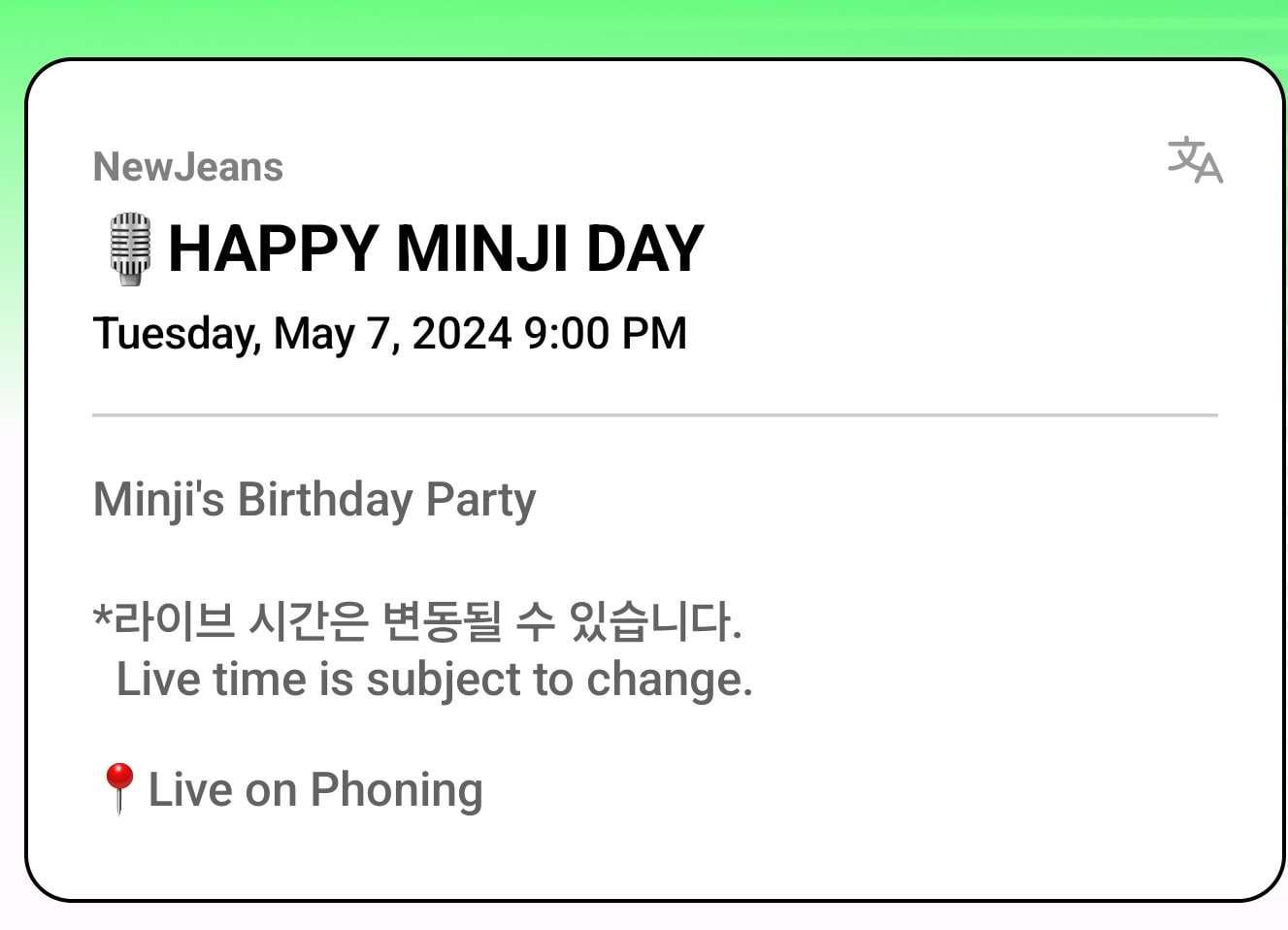 240507 حفلة عيد ميلاد مينجي في الاتصال الهاتفي – الساعة 22:00 بتوقيت كوريا