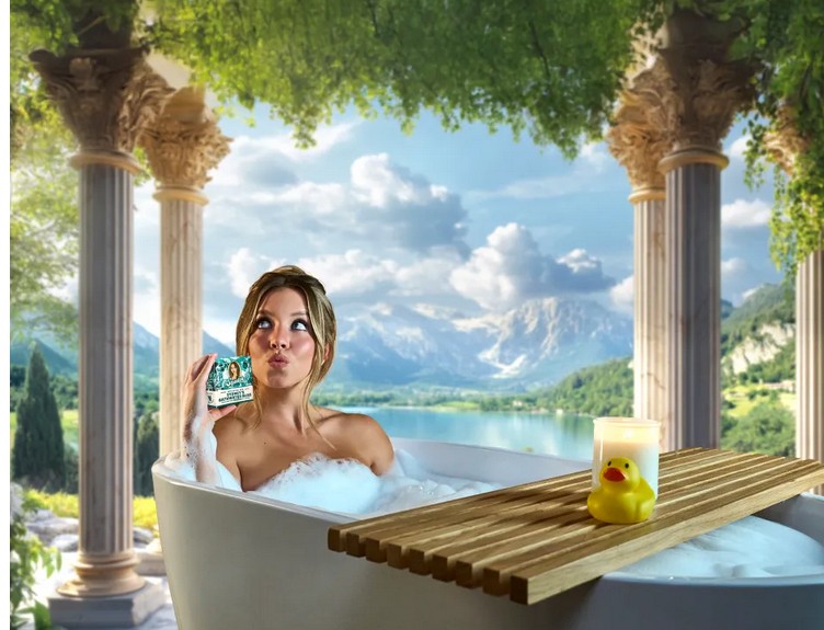 الصابون الذي يحمل توقيع سيدني سويني يتميز بعطر مستوحى من الطبيعة، بمزيج من نغمات الصنوبر، وأشجار الدوغلاس فير، والطحالب الأرضية، إلى جانب لمسة من مياه استحمامها.