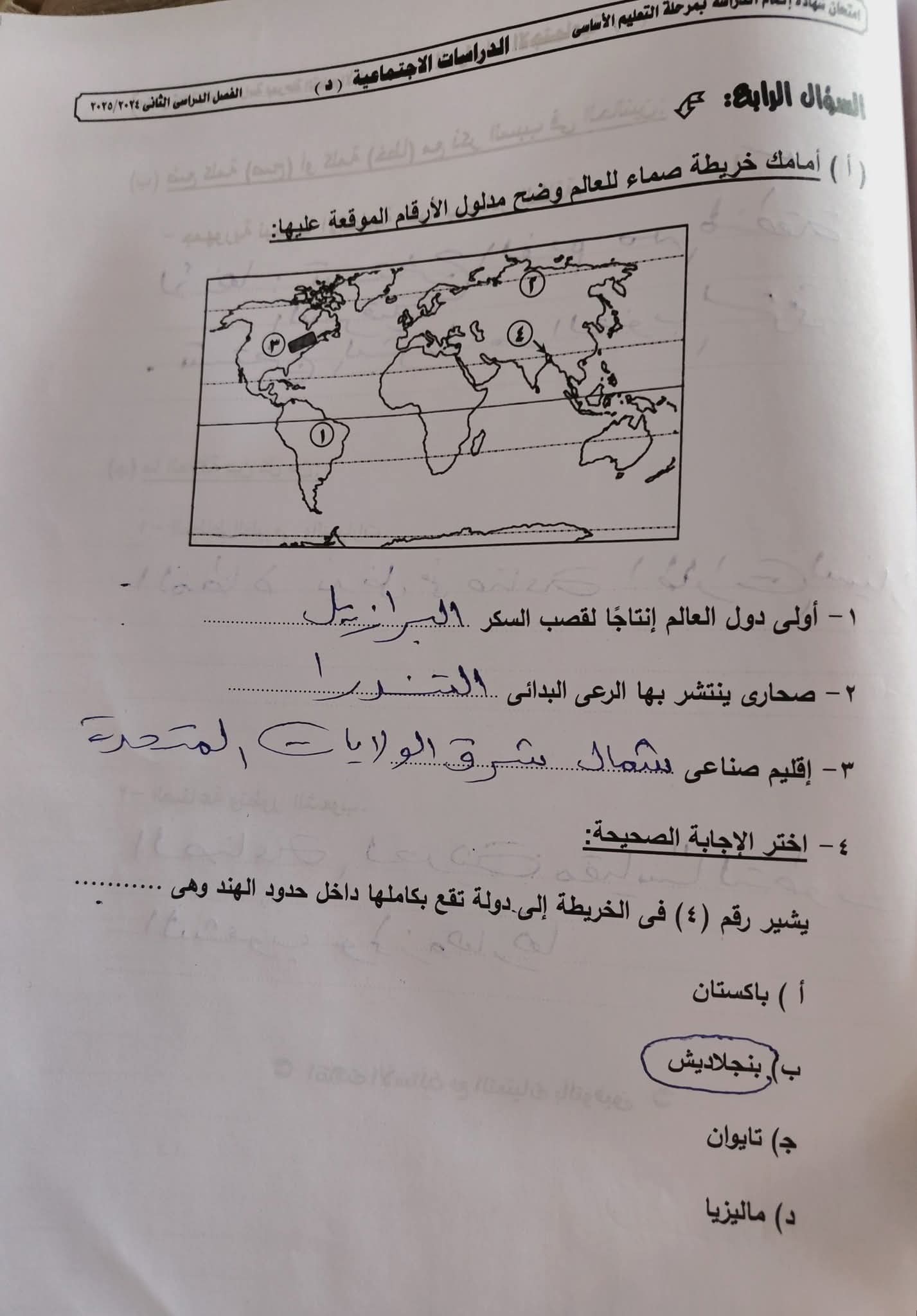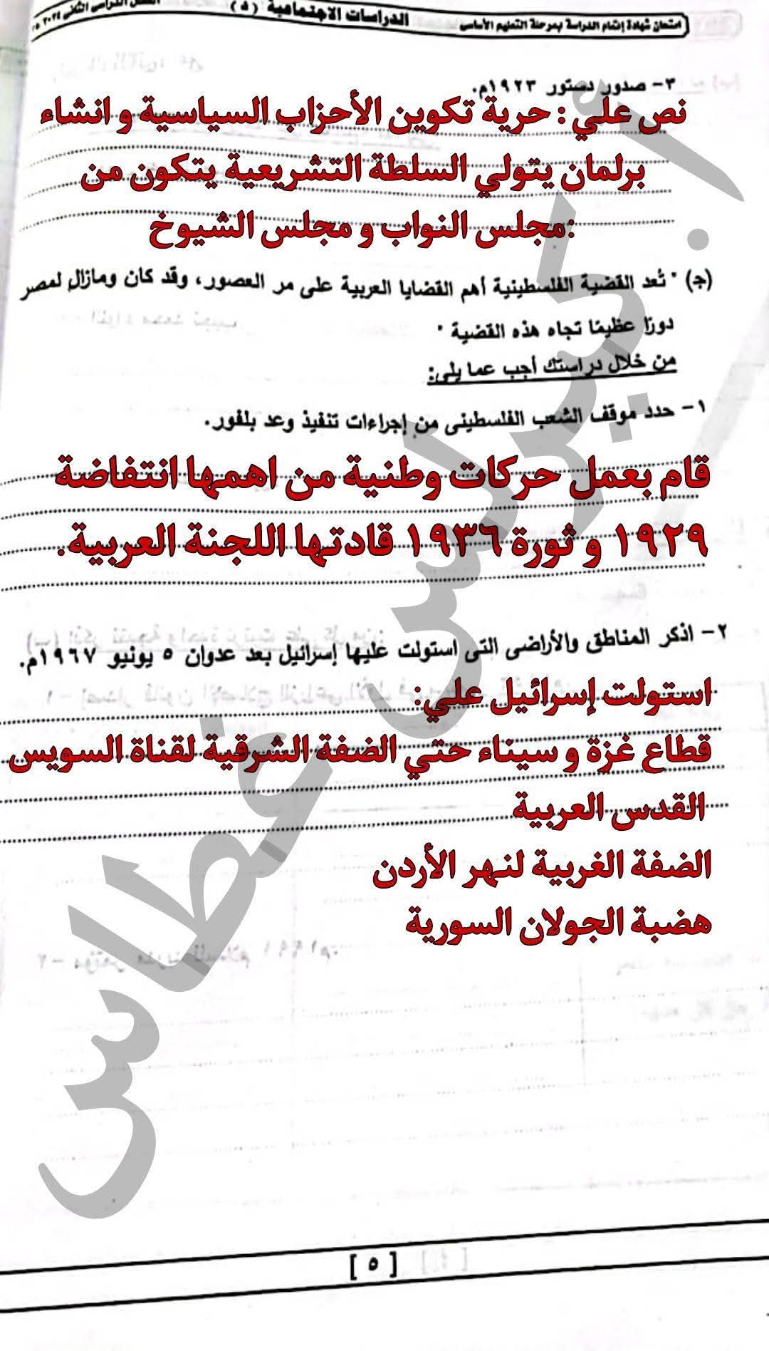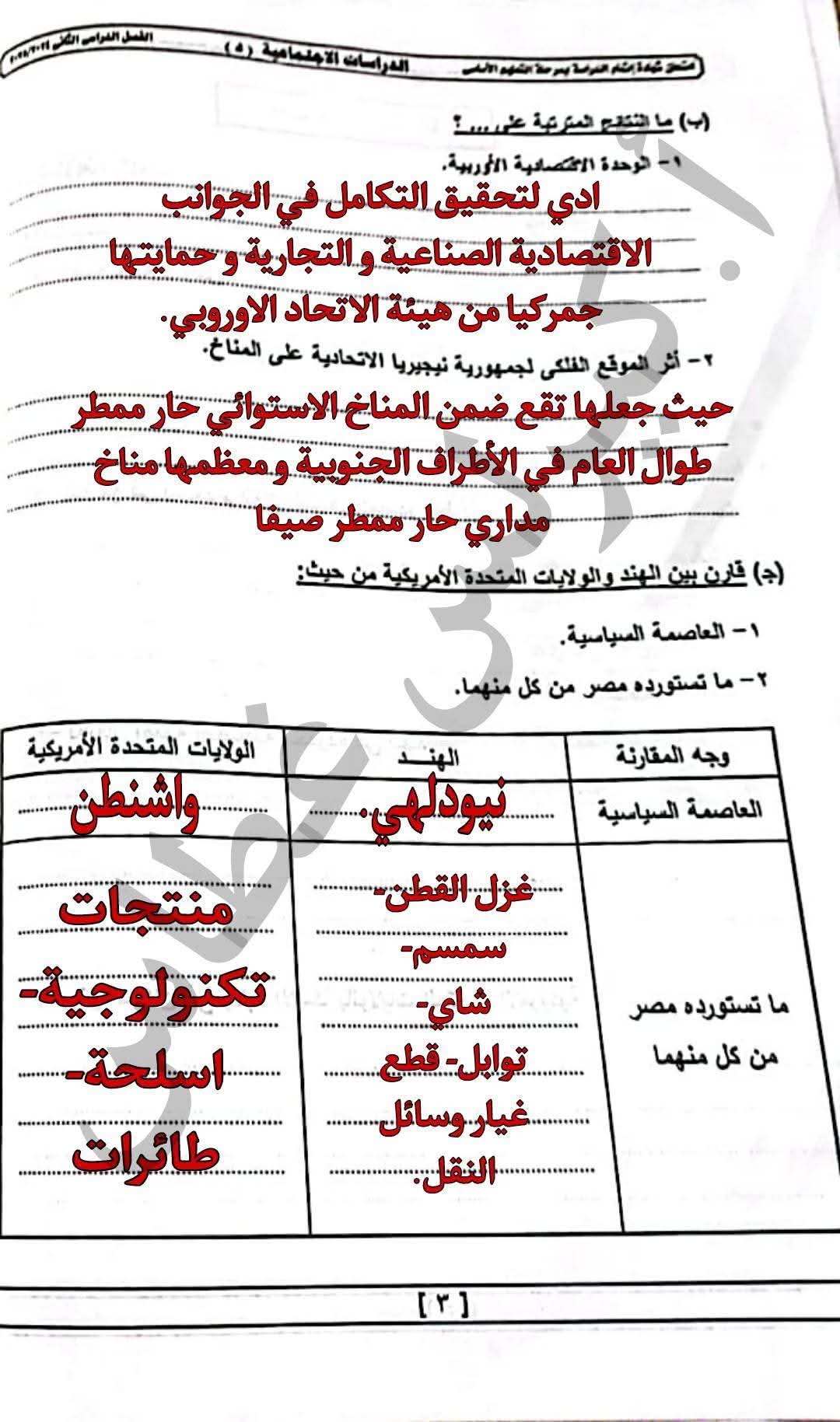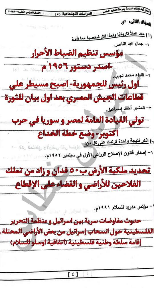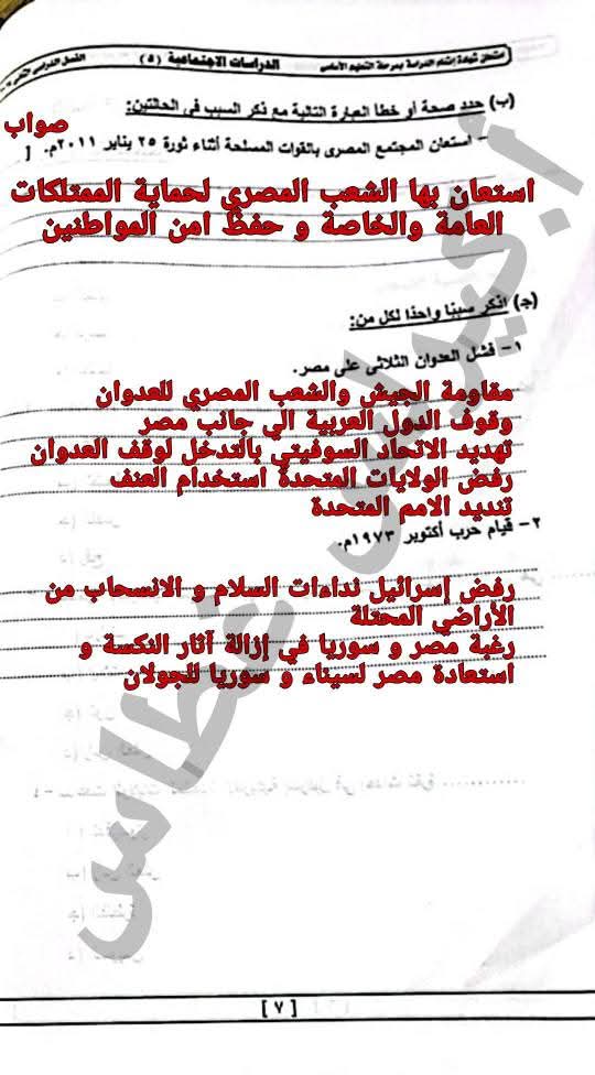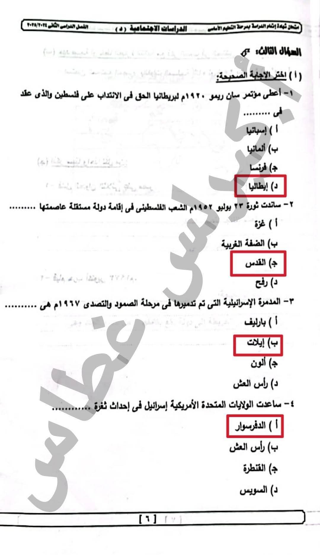 وتمثلت إجابات امتحان الدراسات بمحافظة الجيزة في الآتي: