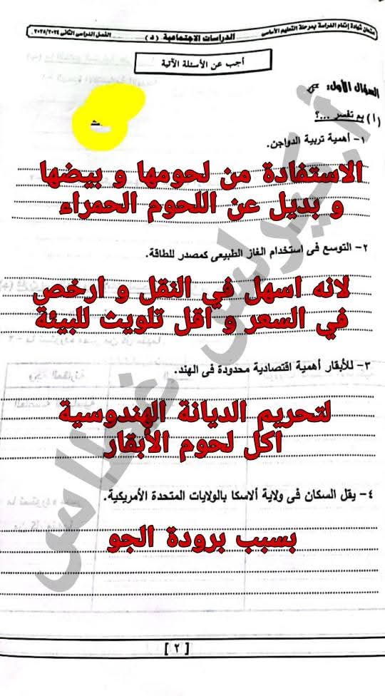 واهتم عدد كبير من معلمي مادة الدراسات الاجتماعية، بنشر نموذج حل امتحان دراسات للصف الثالث الإعدادي في محافظة الجيزة بالترم الثاني 2025.