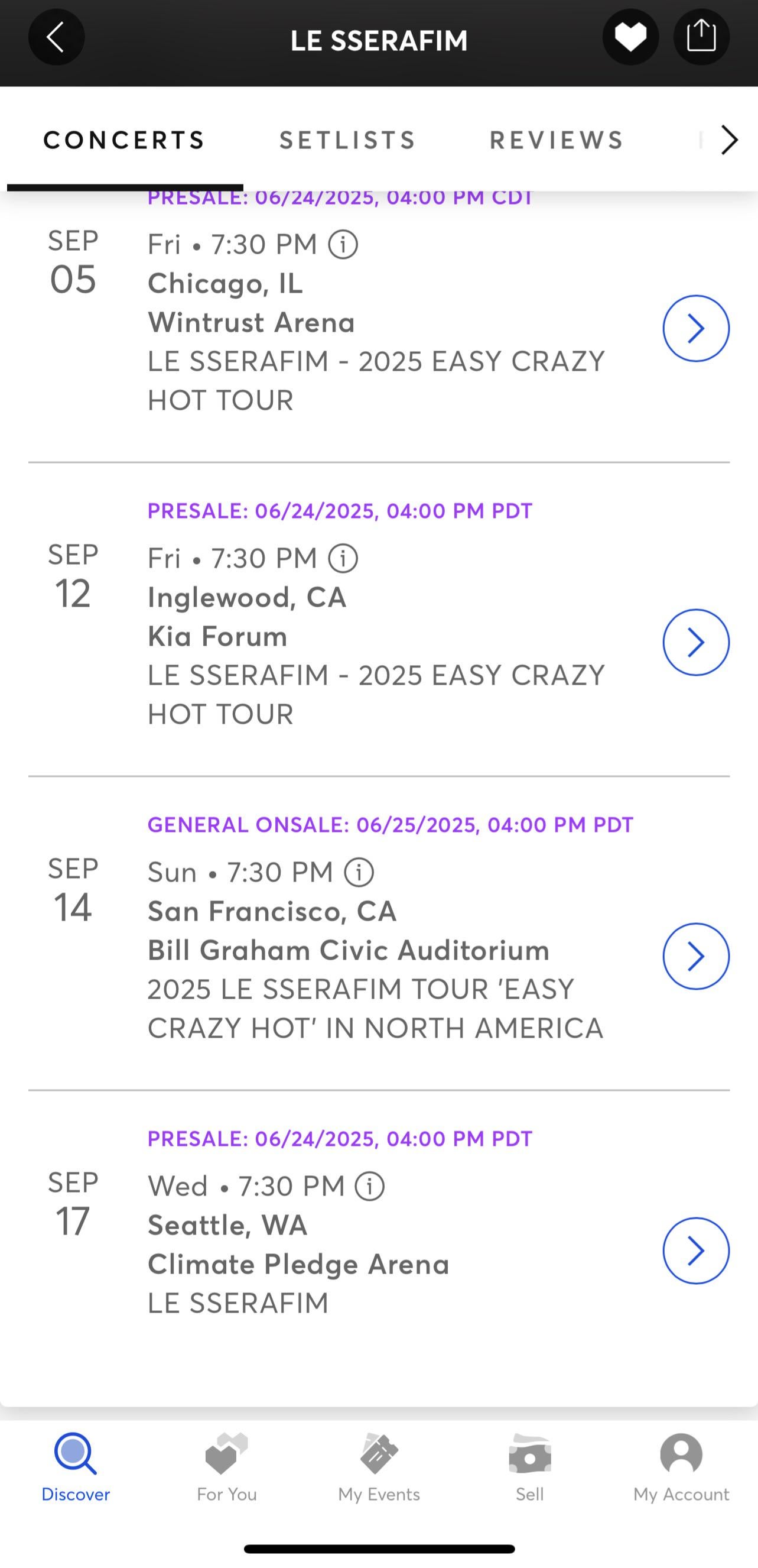 كنت أنظر إلى مواعيد الحفلات الموسيقية على Ticketmaster ولسبب ما ، فإن سان فرانسيسكو ليس لديها شيء ما قبل التواريخ الأخرى. فليس هناك ما قبل الفروسية لسان فرانسيسكو؟ LE SSERAFIM LE SSERAFIM