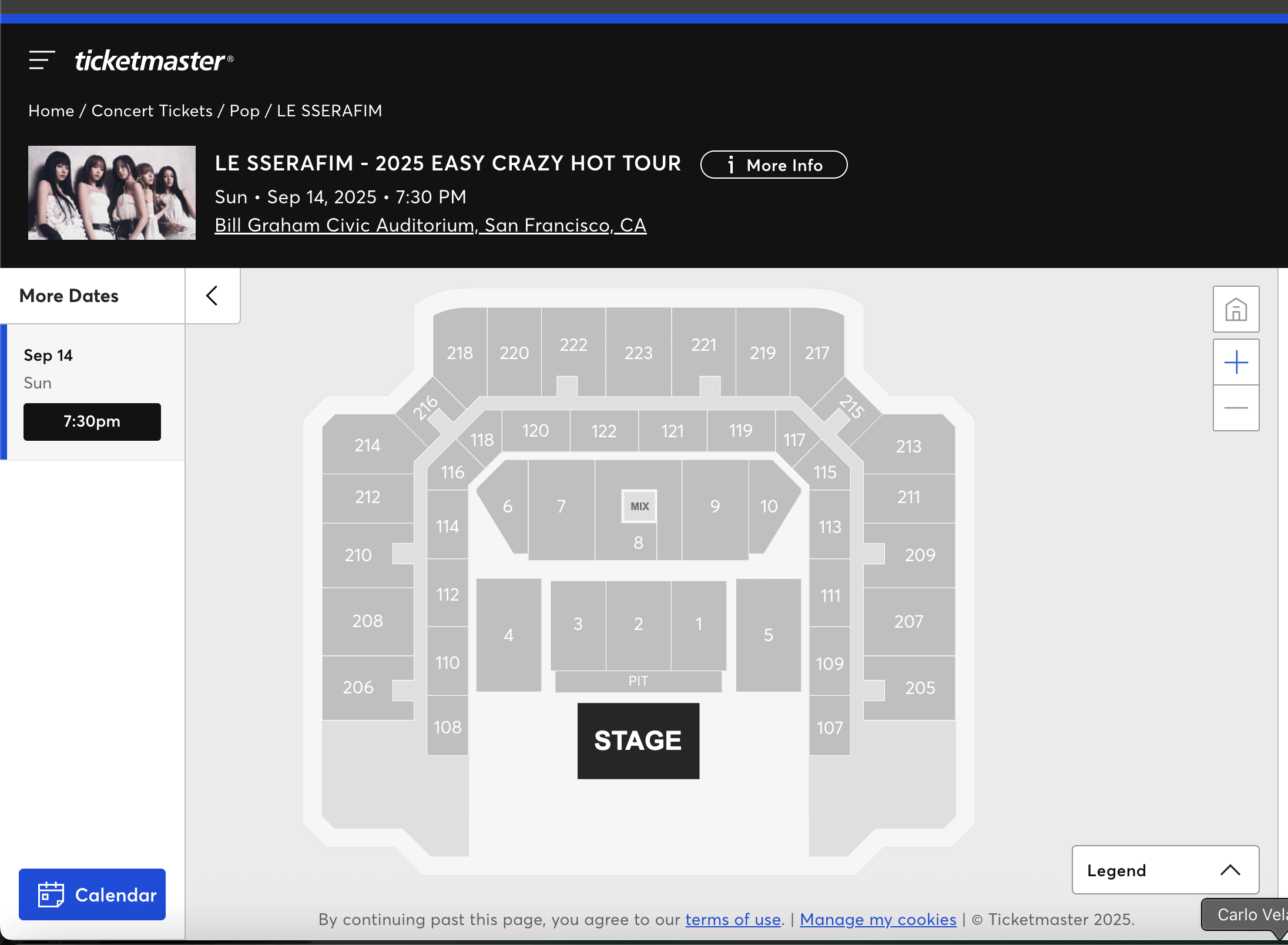 هذا هو العرض الآن على صفحة SF مع اللوحة الجانبية الأكثر تواريخ. لم يكن هناك في الأصل ، لديهم فجوة لمدة 3 أيام بين SF وسياتل ، وبيل جراهام مجاني في 9/15 ، لذلك لدي شعور بأنهم سيضيفون تاريخًا ثانيًا.