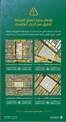 أمانة الرياض تعلن كشط واعادة سفلتة هذه الشوارع