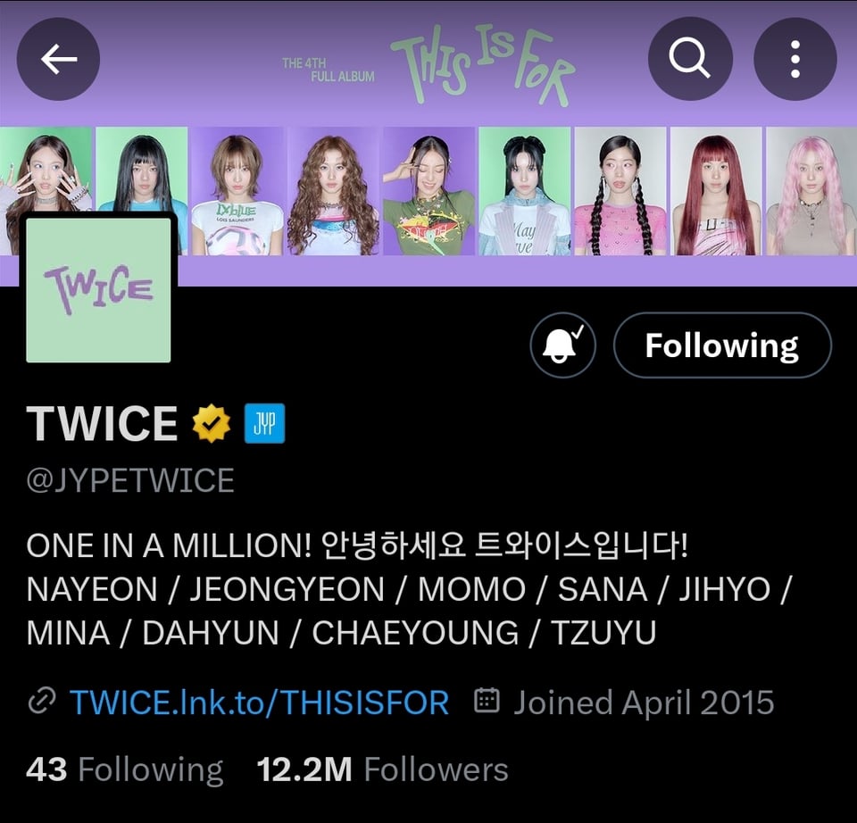 250703 Twitter Update – مرتين صورة ملف تعريف جديد وتخطيط رأس للألبوم الكامل الرابع “This Is for” Four