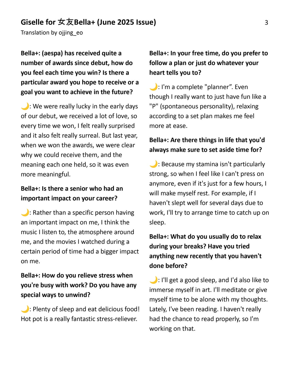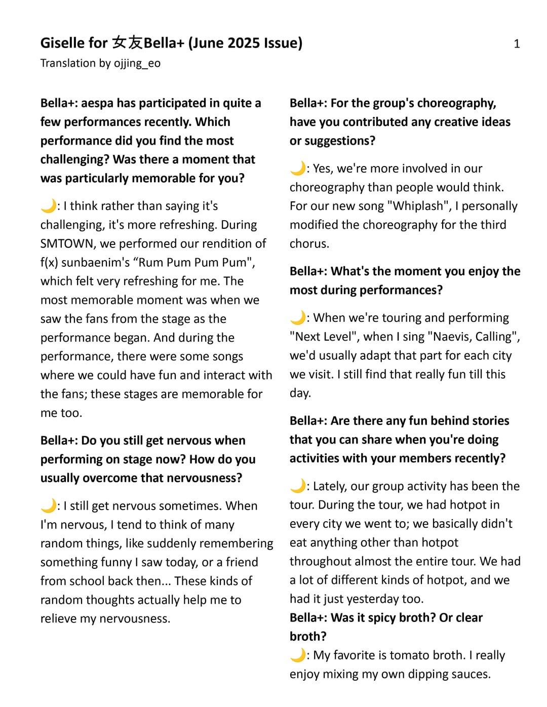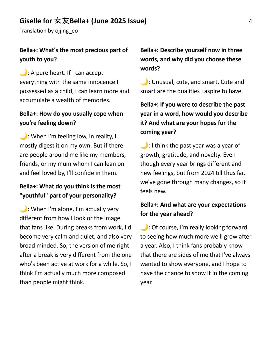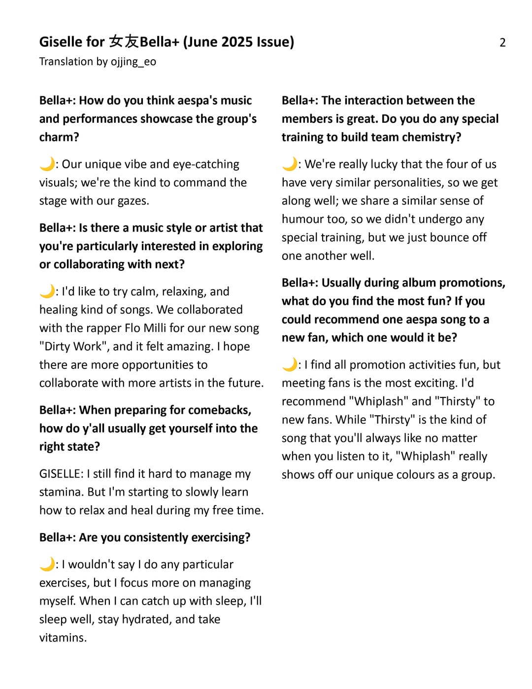 250719 GISELLE for Girlfriend Bella+ (June 2025 Interview)