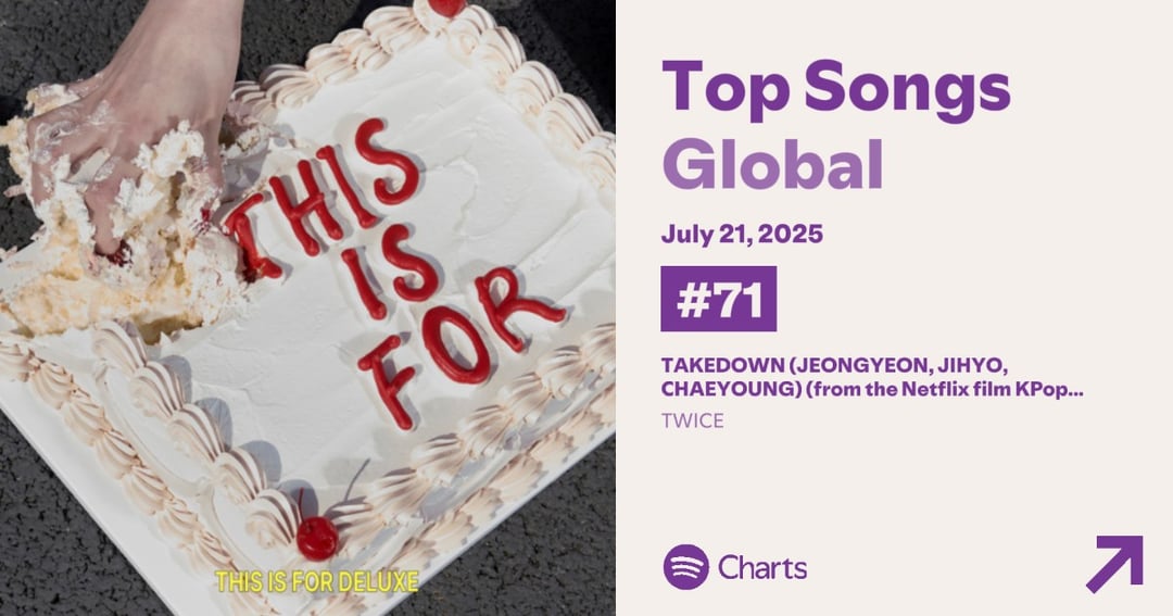 [TWICE] 250722 Global Spotify Charts Update – “This Is for” بمقدار مرتين يظل مستقرًا على Spotify Global في #181 مع 1.237.417 تدفقات. إنهم يرسمون الآن 3 أغنيات على Spotify Global لليوم الحادي عشر على التوالي.