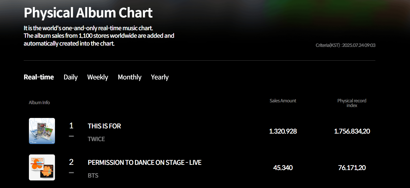 هذا ليس له معنى وأفترض أنه خطأ ، لكنني متأكد تمامًا من أن هذا ما يقوله الآن: https://www.hanteochart.com/chart/album/real TWICE TWICE