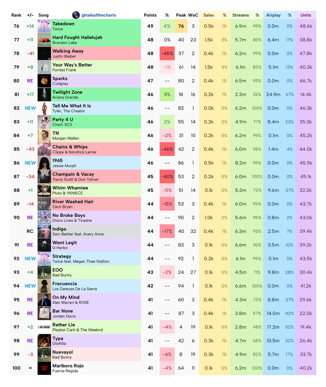 250727 Talk of the Charts Twitter Update - استنادًا إلى Billboard Hot 100 تنبؤات ، استراتيجية Ft. ستدخل Megan You Stallion في رقم 92 ، بينما يقفز Takedown إلى #76
