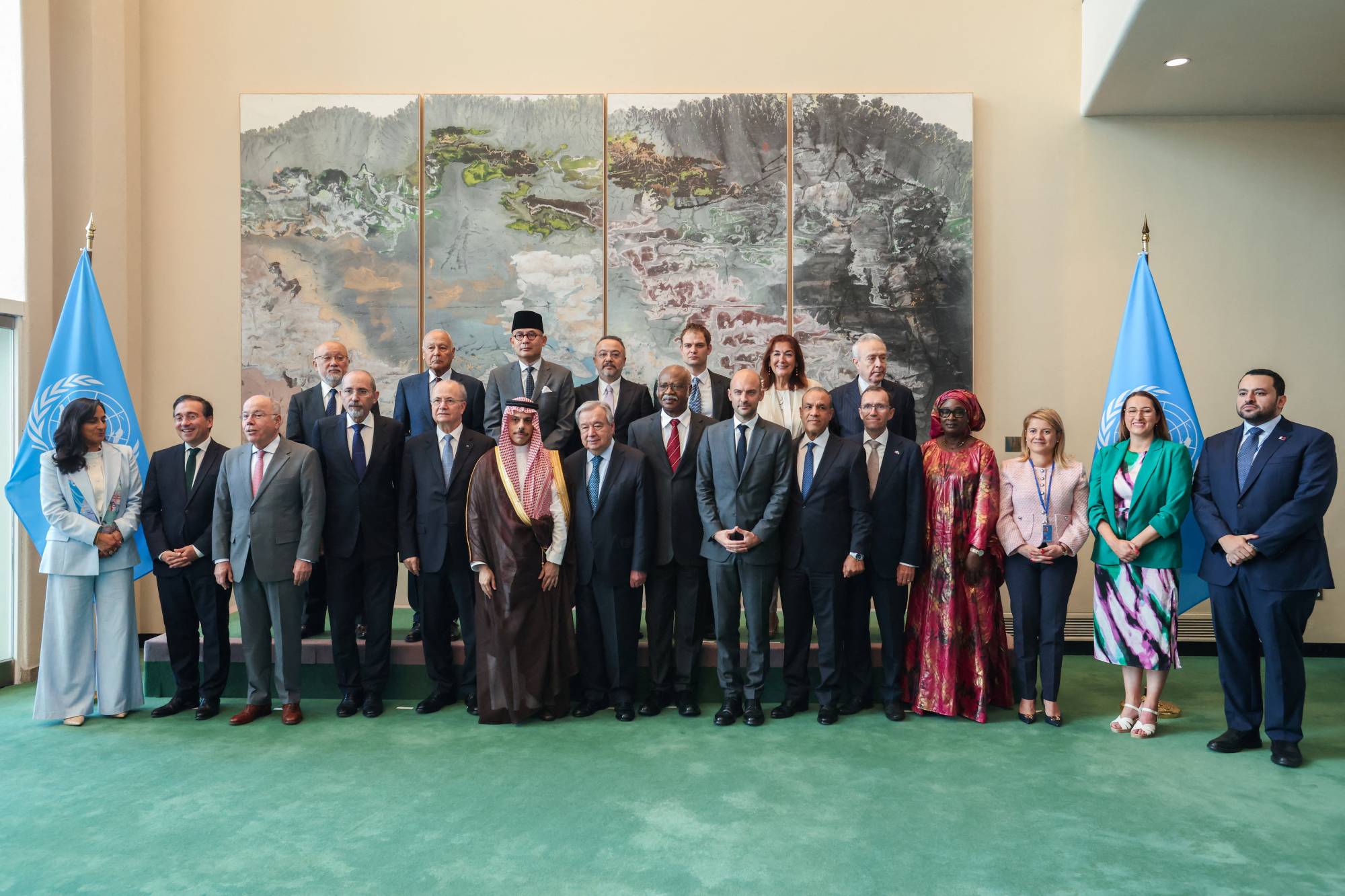 صورة جماعية للمشاركين في «مؤتمر حل الدولتين» في نيويورك (رويترز)