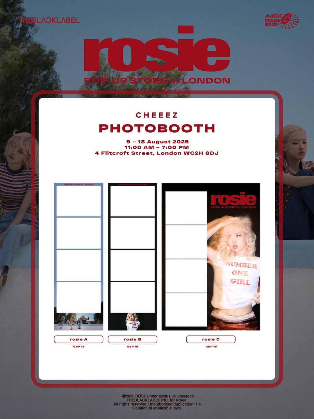 [BLACKPINK] 250809 ألبوم Rosé First Studio [rosie] متجر المنبثقة في لندن تشيز فوتوبوث