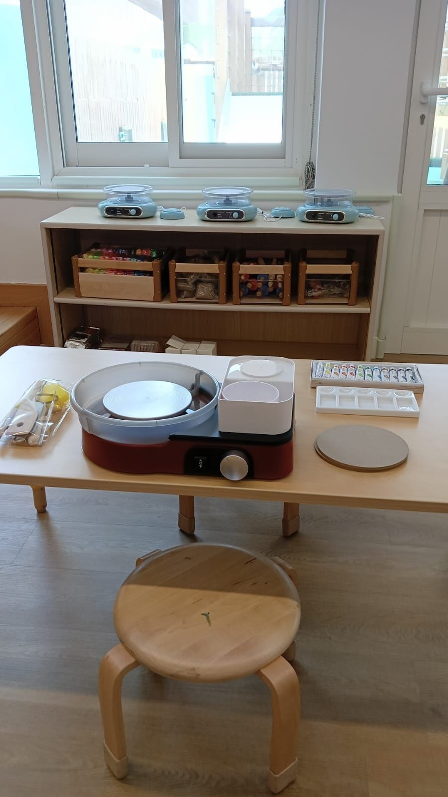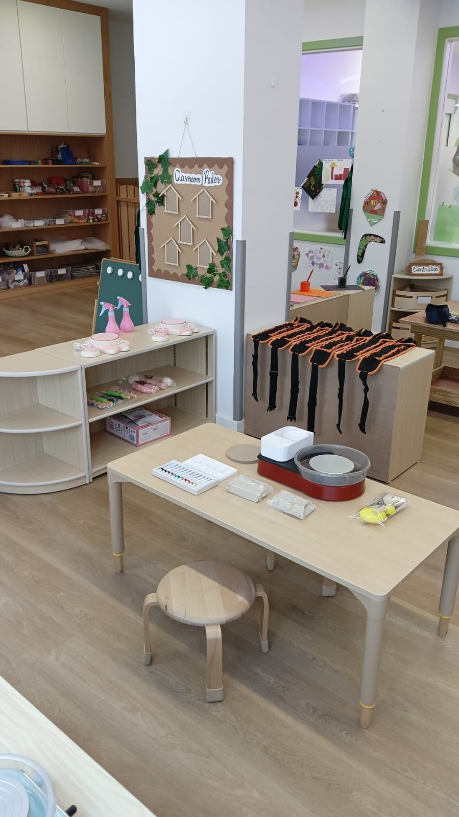 في غرفة الفخار الجديدة، يقوم الأطفال بتشكيل الطين بأيديهم، مما يعزز من تحكمهم الحركي الواعي، ويزرع فيهم ممارسات اليقظة الذهنية والتركيز العميق. وتشير الأبحاث إلى أن الأنشطة المفعمة بالحواس، مثل العمل بالطين، تساهم بشكل كبير في تحسين التركيز والصبر لدى الأطفال من خلال إبطاء وتيرة التعلم وربطه باللحظة الحاضرة. كما تدعم هذه الأنشطة مهارات التنظيم العاطفي والمثابرة – وهي مهارات غالباً ما تغيب في بيئة اليوم المشبعة بالشاشات وسرعة الإيقاع.