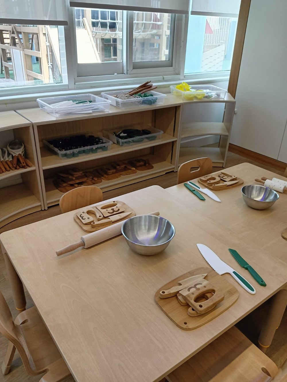 في مساحة المطبخ المخصصة داخل الحضانة، يتعلم الأطفال كيفية إعداد الوجبات الخفيفة بأنفسهم، مما يمنحهم شعوراً بالفخر والاستقلالية من خلال المهام العملية اليومية. وتؤكد الدراسات أن أنشطة إعداد الطعام تُعزز من الوظائف التنفيذية للدماغ، وهي المهارات العقلية المسؤولة عن التخطيط، والتركيز، وتحديد الأهداف. فعندما يقوم الأطفال بالتقطيع، والقياس، والتنظيف، فإنهم لا يطوّرون فقط مهاراتهم الحركية الدقيقة، بل أيضاً يتحمّلون المسؤولية، ويتعلمون ترتيب الخطوات، ويكتسبون الثقة بقدراتهم الذاتية.