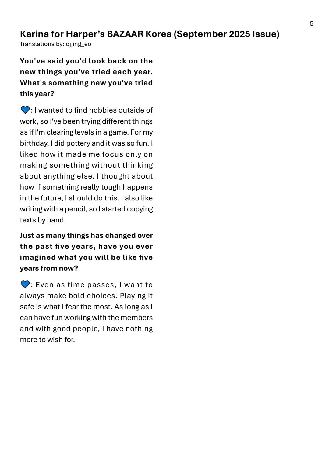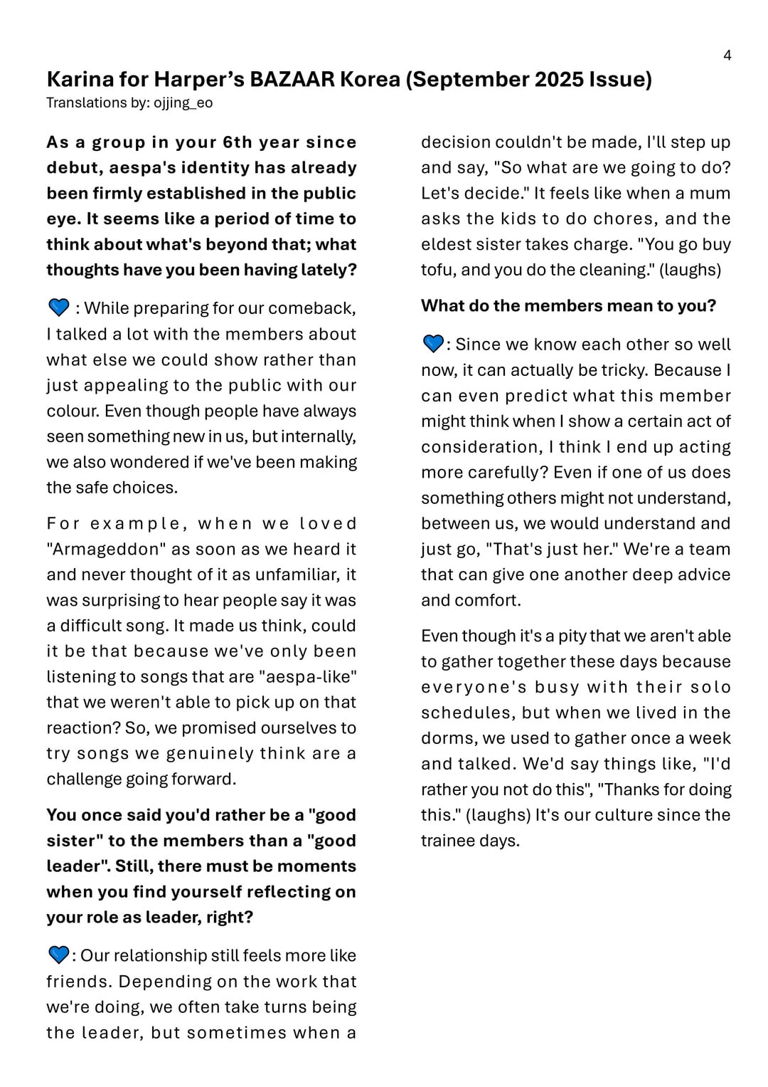 250819 كارينا لكوريا هاربر بازار كوريا (سبتمبر 2025 مقابلة)
