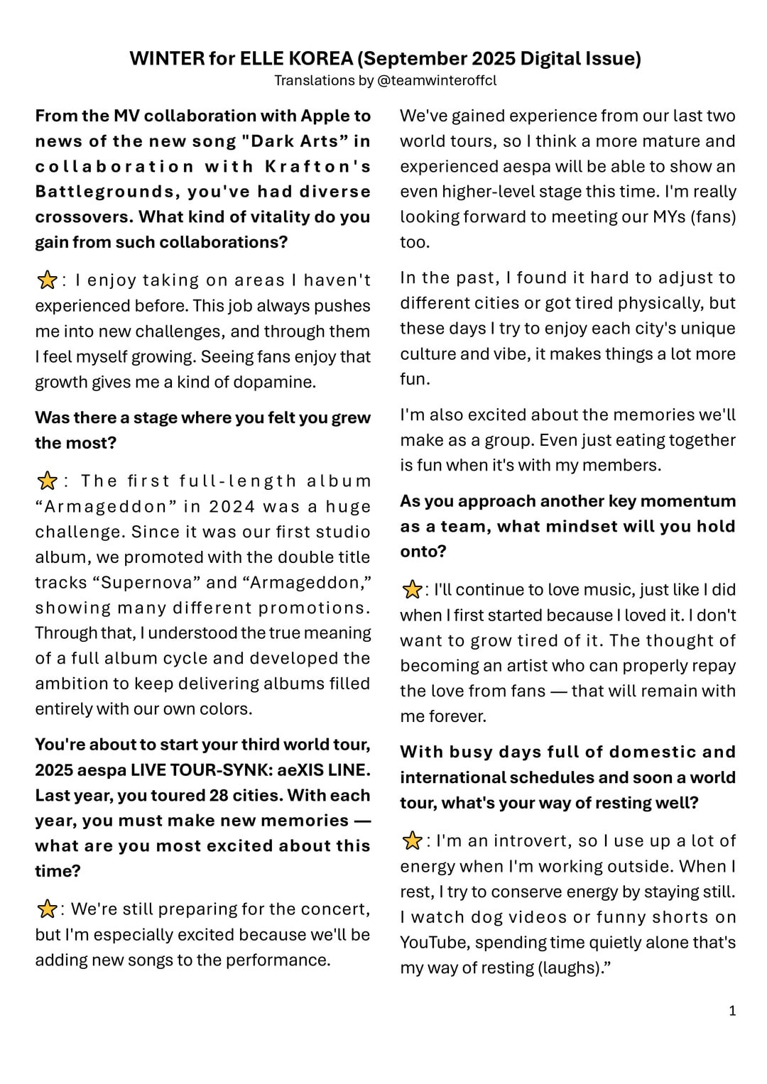 [aespa] 250827 Winter for Elle Korea (سبتمبر 2025 العدد الرقمي + مقابلة كاملة)