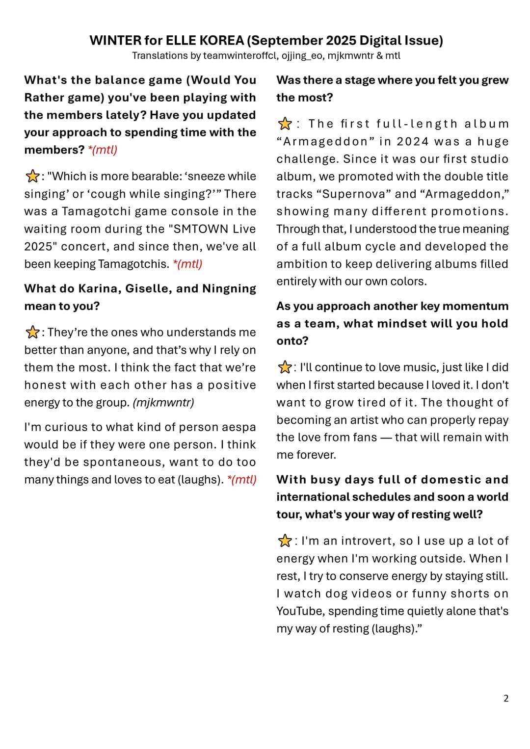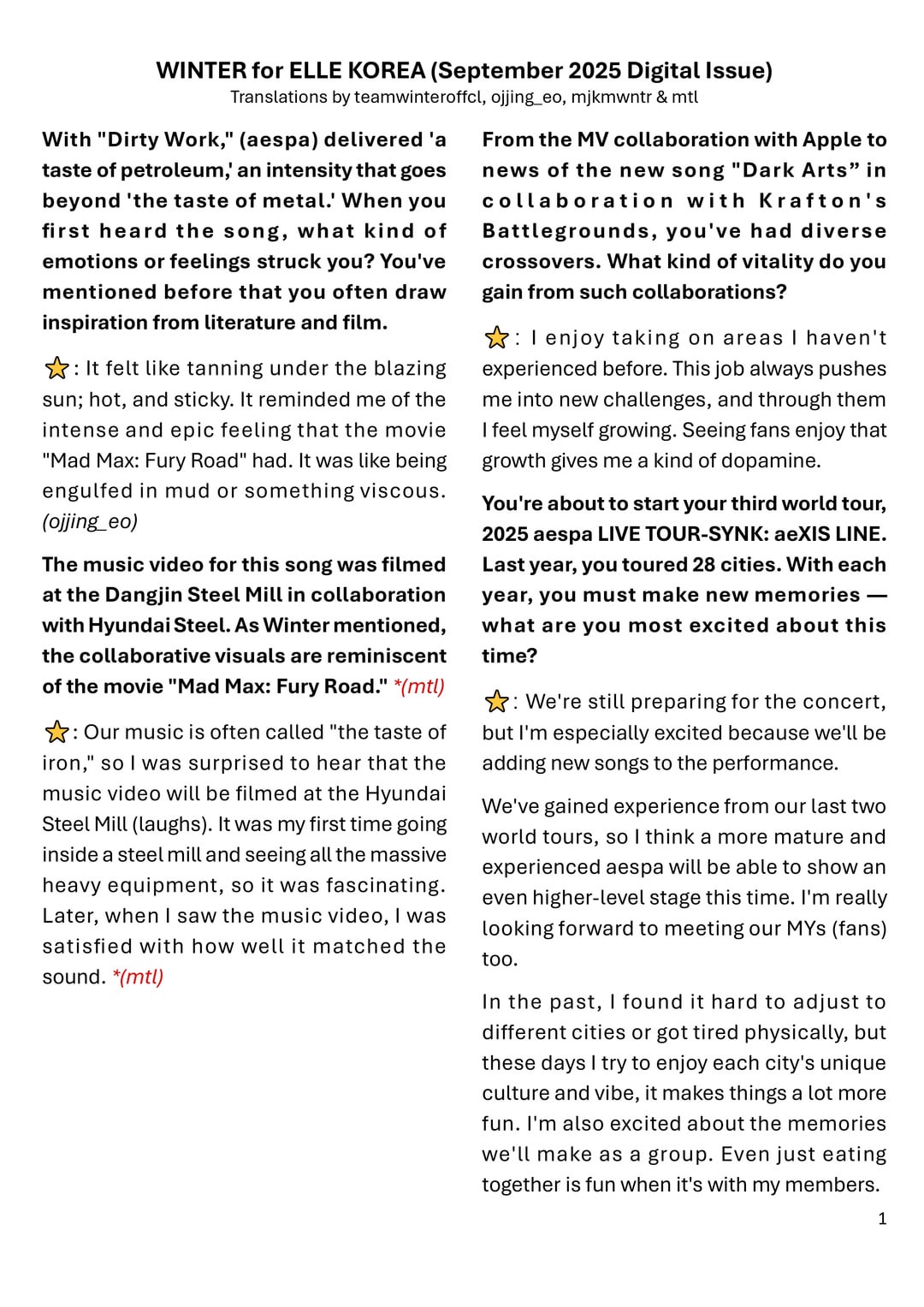 [aespa] 250827 Winter for Elle Korea (سبتمبر 2025 العدد الرقمي + مقابلة كاملة)