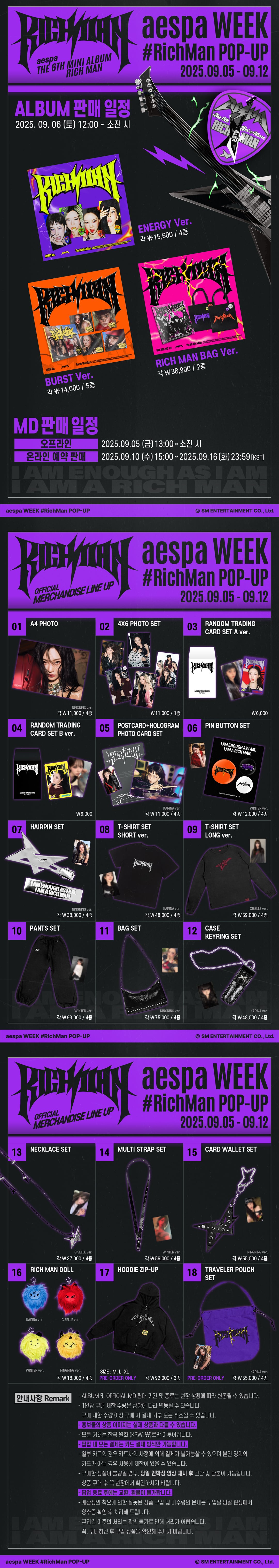 250903 AESPA – الألبوم المصغر السادس “Rich Man” Aespa Week المنبثق في سيول (إشعار الحدث + تفاصيل MD) aespa aespa
