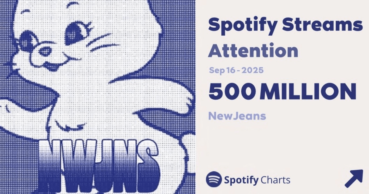 250916 قد تجاوز الانتباه 500 مليون تيار على سبوتيفي. إنها أغنيتهم الخامسة للوصول إلى هذا المعلم NewJeans NewJeans
