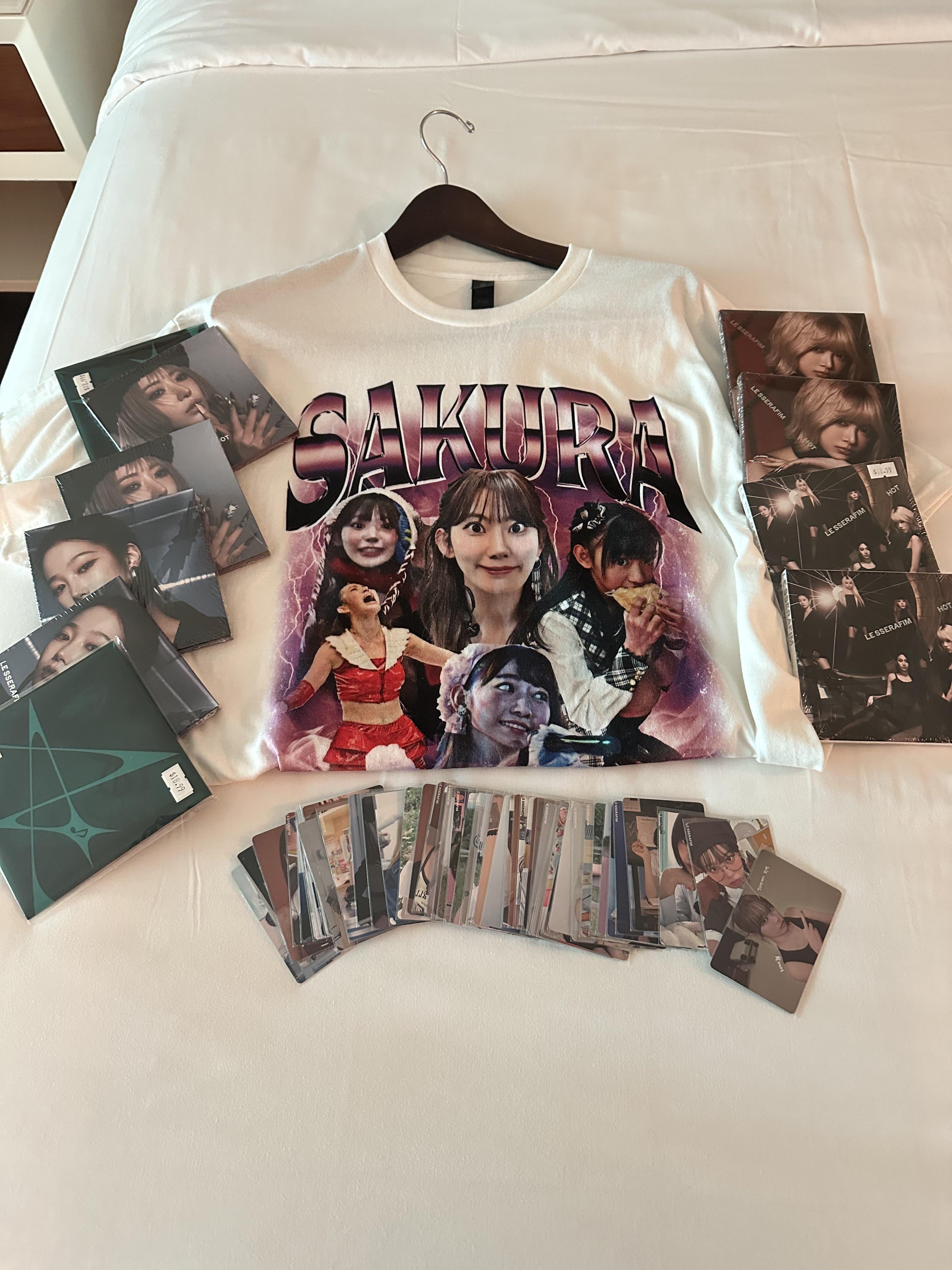 جميعهم يعطون هذه الألبومات الضوئية/المصغرة غدًا في فيغاس. سأكون في قميص ساكورا ميمي! لا أطيق الانتظار للحفل الموسيقي !!! LE SSERAFIM LE SSERAFIM