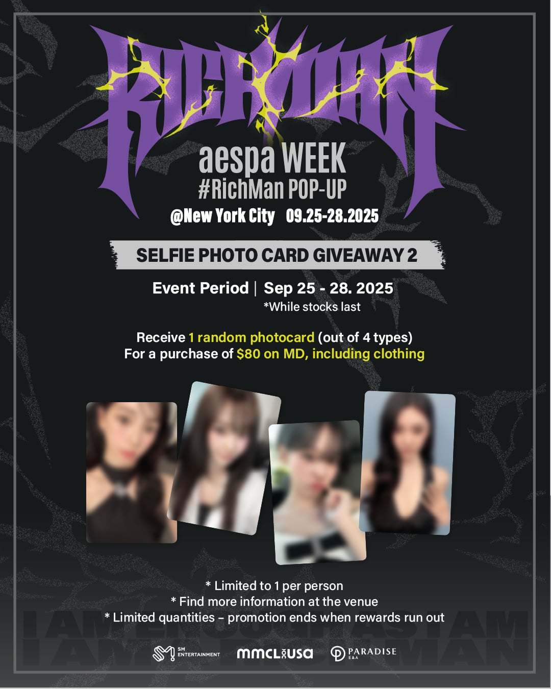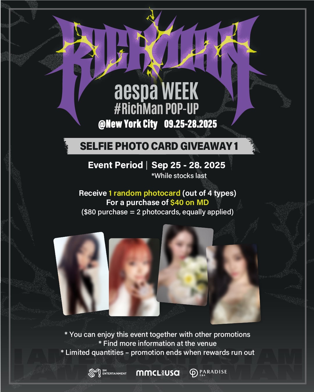 إليكم صورة حدث MD Pop-Up Store MD. إذا قمت بشراء أكثر من 40 دولارًا/ 80 دولارًا من MD الرسمي ، فستتلقى بطاقات صور محدودة.