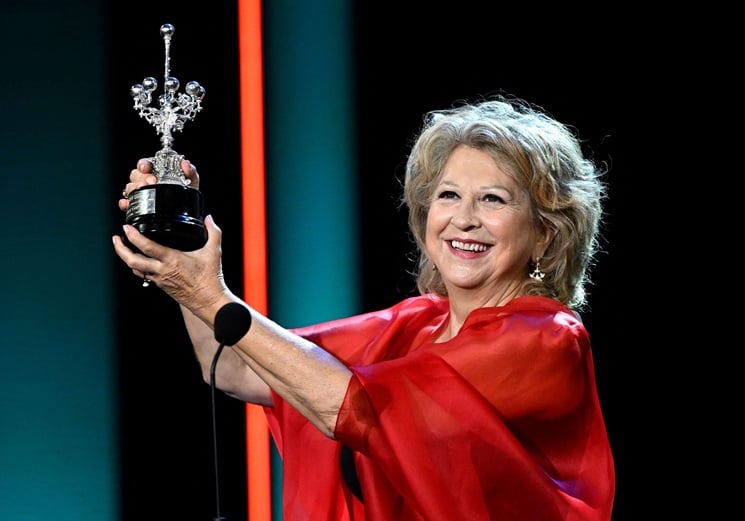 حصلت المنتجة الإسبانية إيستر غارسيا على جائزة دونوستيا خلال مهرجان سان سيباستيان السينمائي. في 19 سبتمبر 2025. ا ف ب