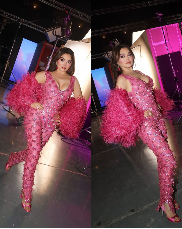 وفي أحدث جلسات تصويرها حبست الأنفاس بإطلالات باللون الفوشيا من توقيع المصمم اللبناني رامي قاضي، حيث مزجت بين الترتر اللامع والكاب الطويل المغطّى بالريش لتبرز أسلوباً عصرياً فاخرًا لا يخلو من لمسة درامية ساحرة.