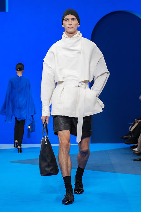 أما أزياء الرجال فكانت أكثر صعوبة في التمييز، حيث امتدت من الجينز الأخضر الليموني والملابس الخارجية التقنية إلى المعاطف الجلدية الفاخرة. وعندما تم تصميمها، أعطت طابعًا أنيقًا مستوحى من أسلوب نوراييف خارج أوقات العمل، لكن هذا القسم لا يزال قيد التطوير.