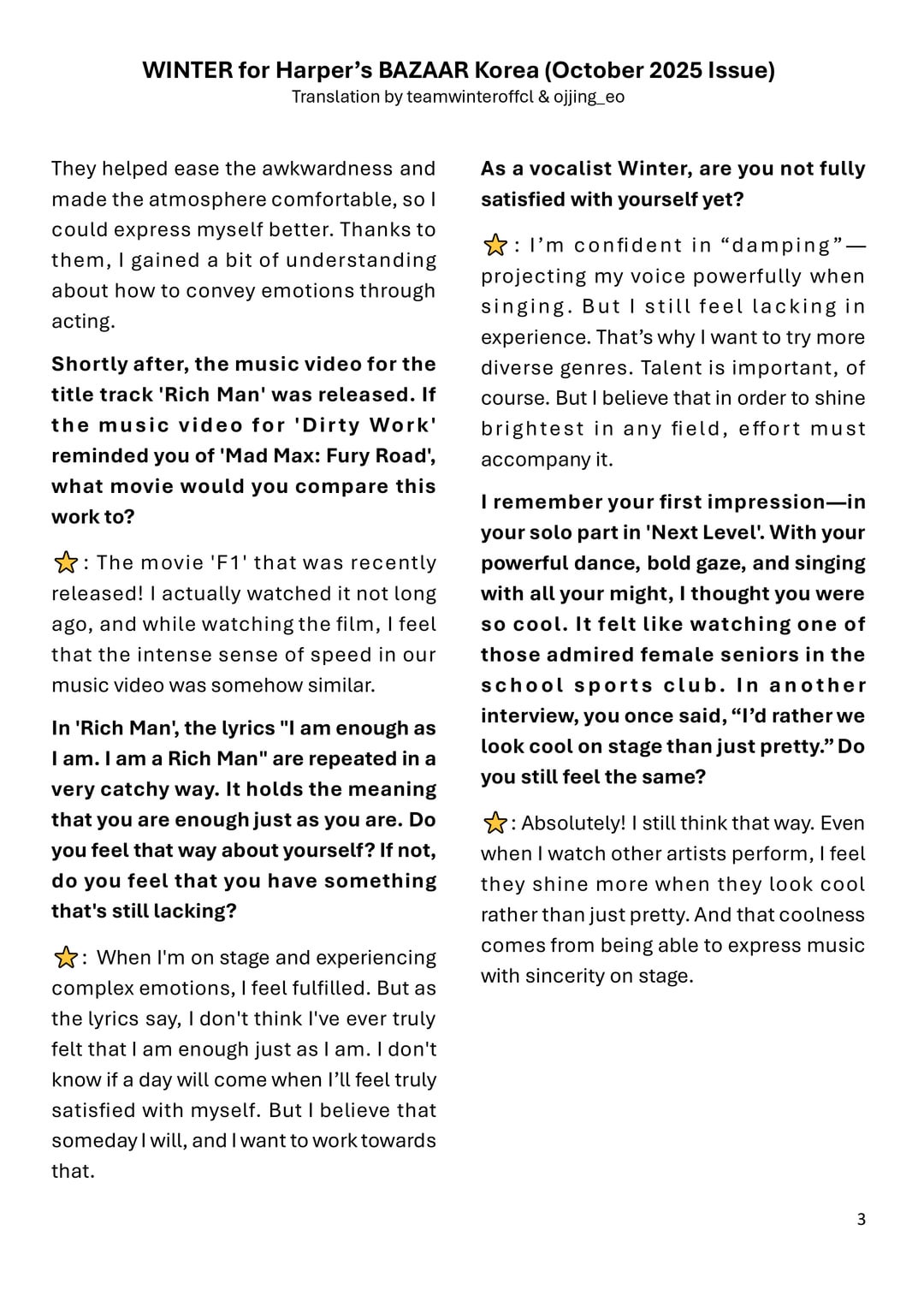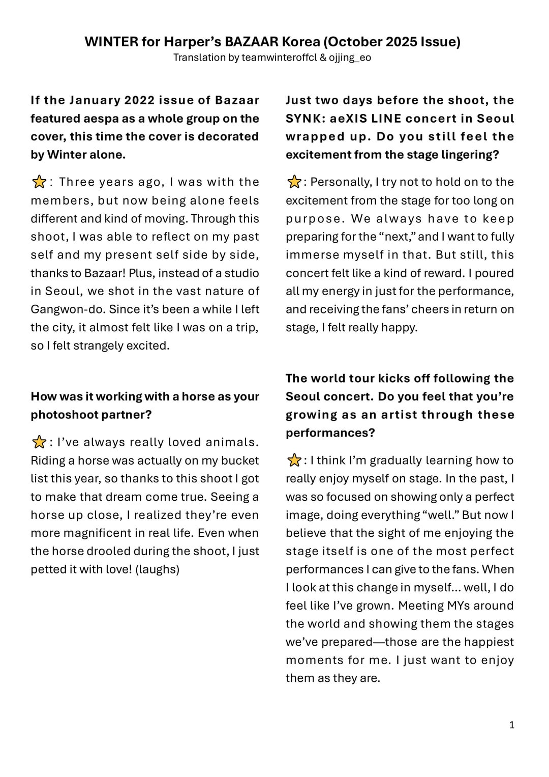 [aespa] 251003 الشتاء ل Harper’s Bazaar Korea X Polo Ralph Lauren (مقابلة إصدار أكتوبر 2025)