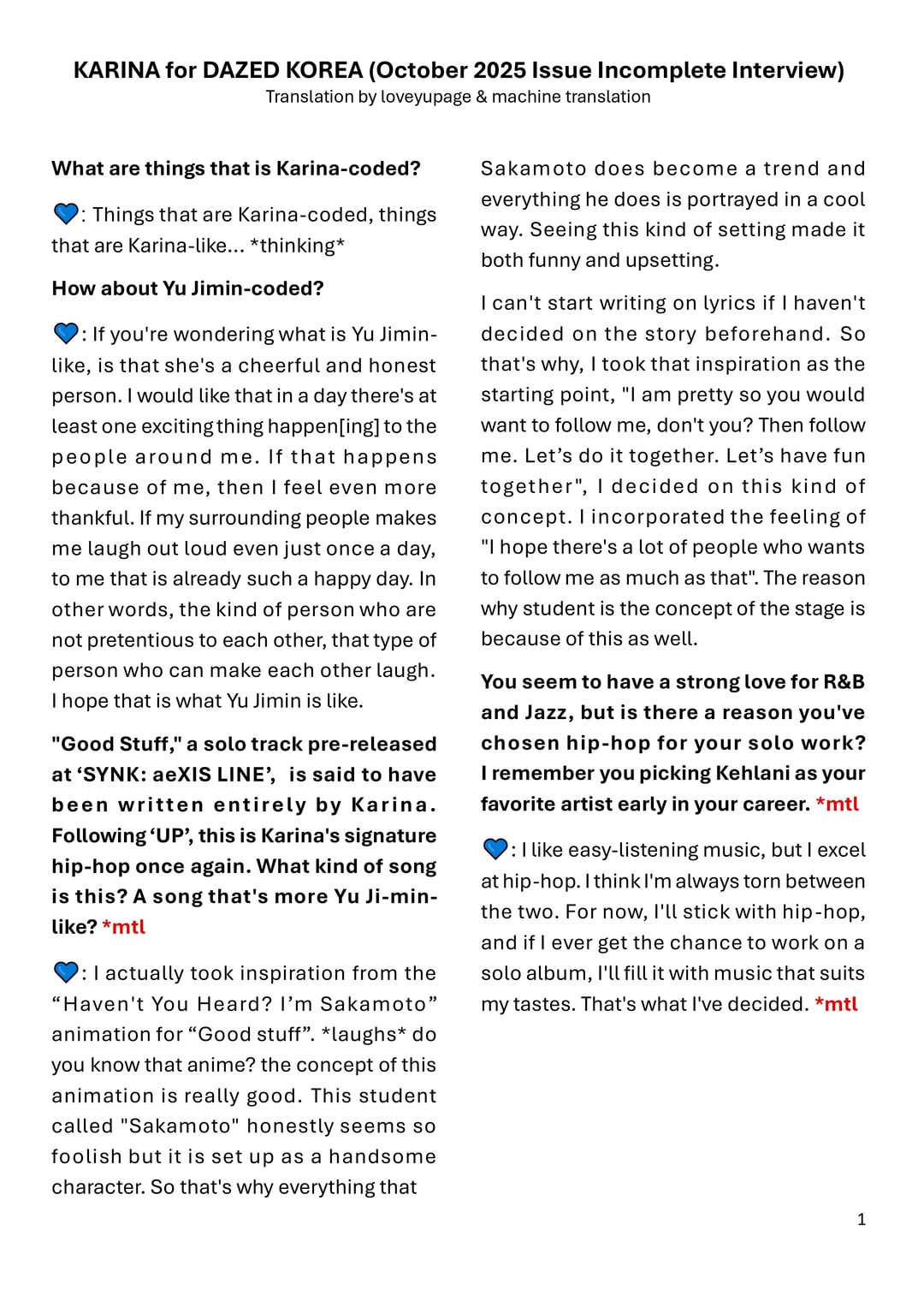 مقابلة كاملة (كور): 01 / 02 | ترجمة الائتمان ل Loveyupage: 01 / 02 / 03 إذا كانت هناك ترجمة كاملة ، فسوف أقوم بالتحديث وأنشر مرة أخرى. aespa aespa