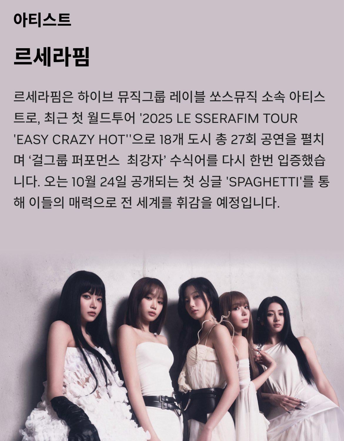251004 ستقوم Le Sserafim في مهرجان Geforce Gamer – Seoul في Coex Square في 30 أكتوبر 2025.