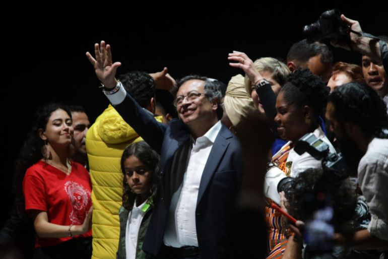 الرئيس الكولومبي غوستافو بيترو عقب فوزه في الانتخابات الرئاسية الكولومبية التي أُجريت في بوغوتا، كولومبيا، في 19 يونيو/حزيران 2022 (الأناضول)