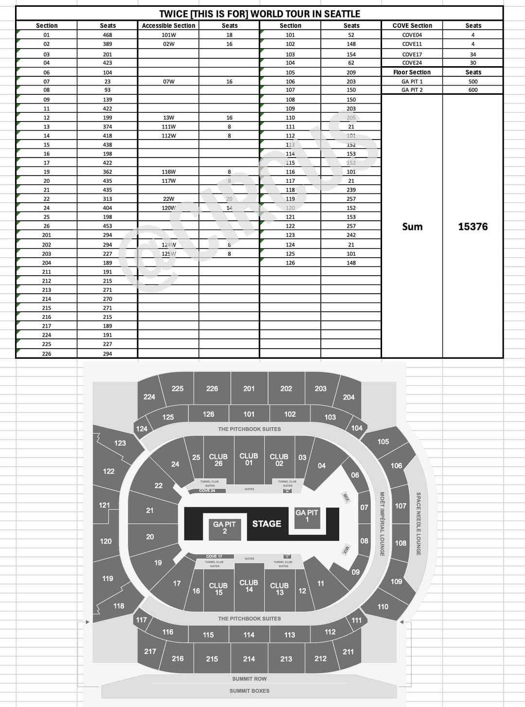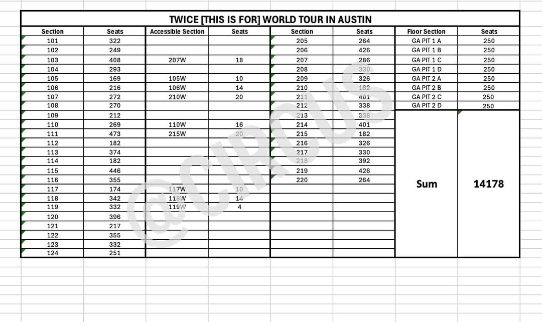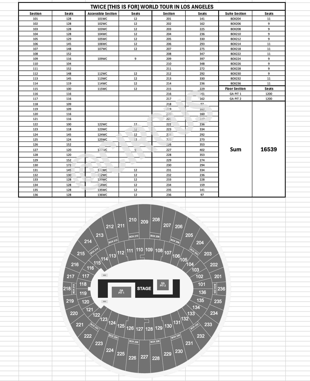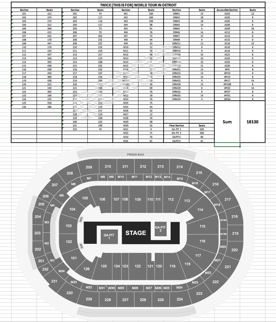 (يوضح ما ورد أعلاه تعدادات المقاعد التفصيلية لـ 20 موقعًا. قد تكون بعض مخططات المقاعد المقابلة غير دقيقة – يرجى الرجوع إلى Ticketmaster للحصول على التحديثات.)