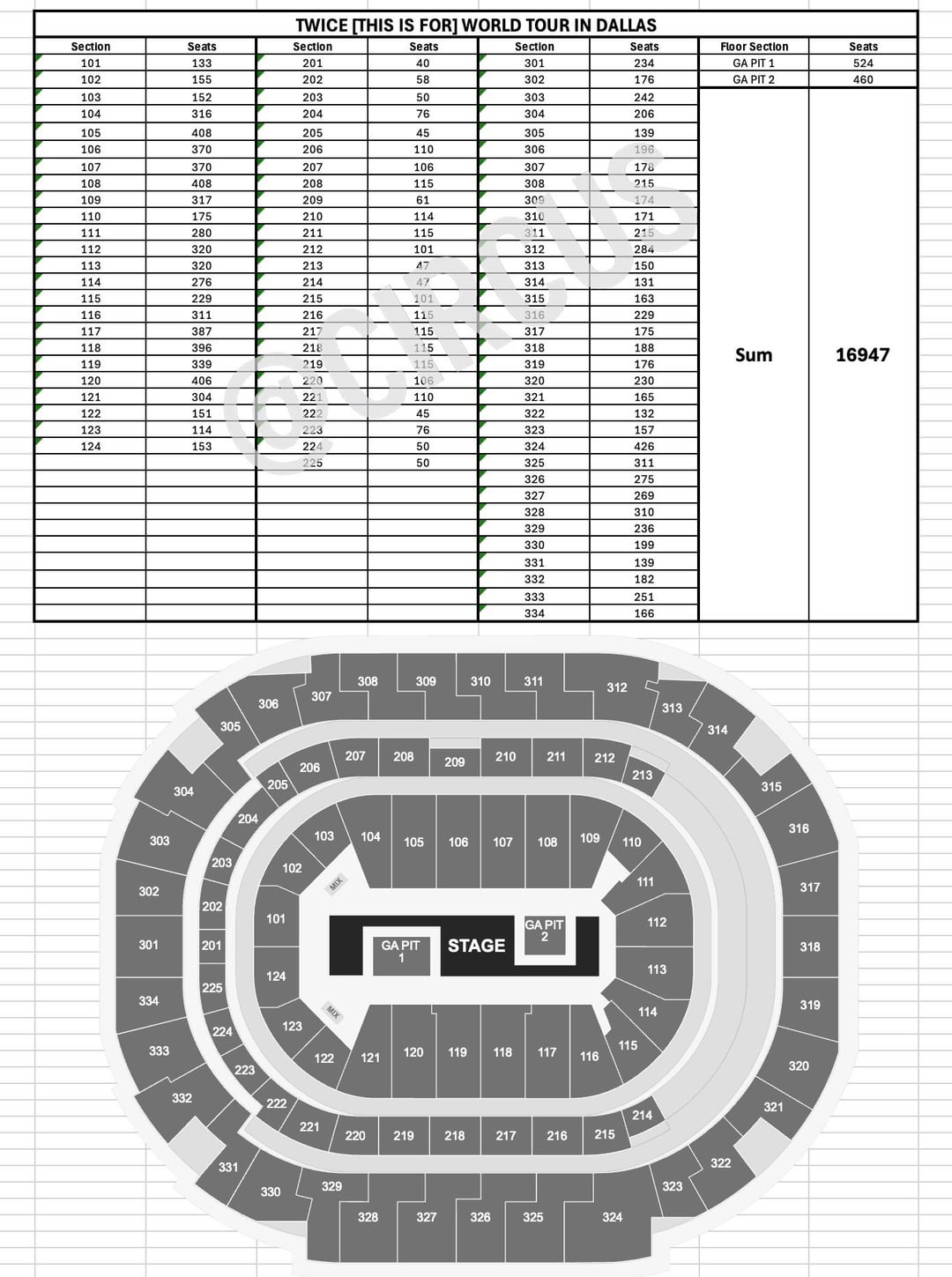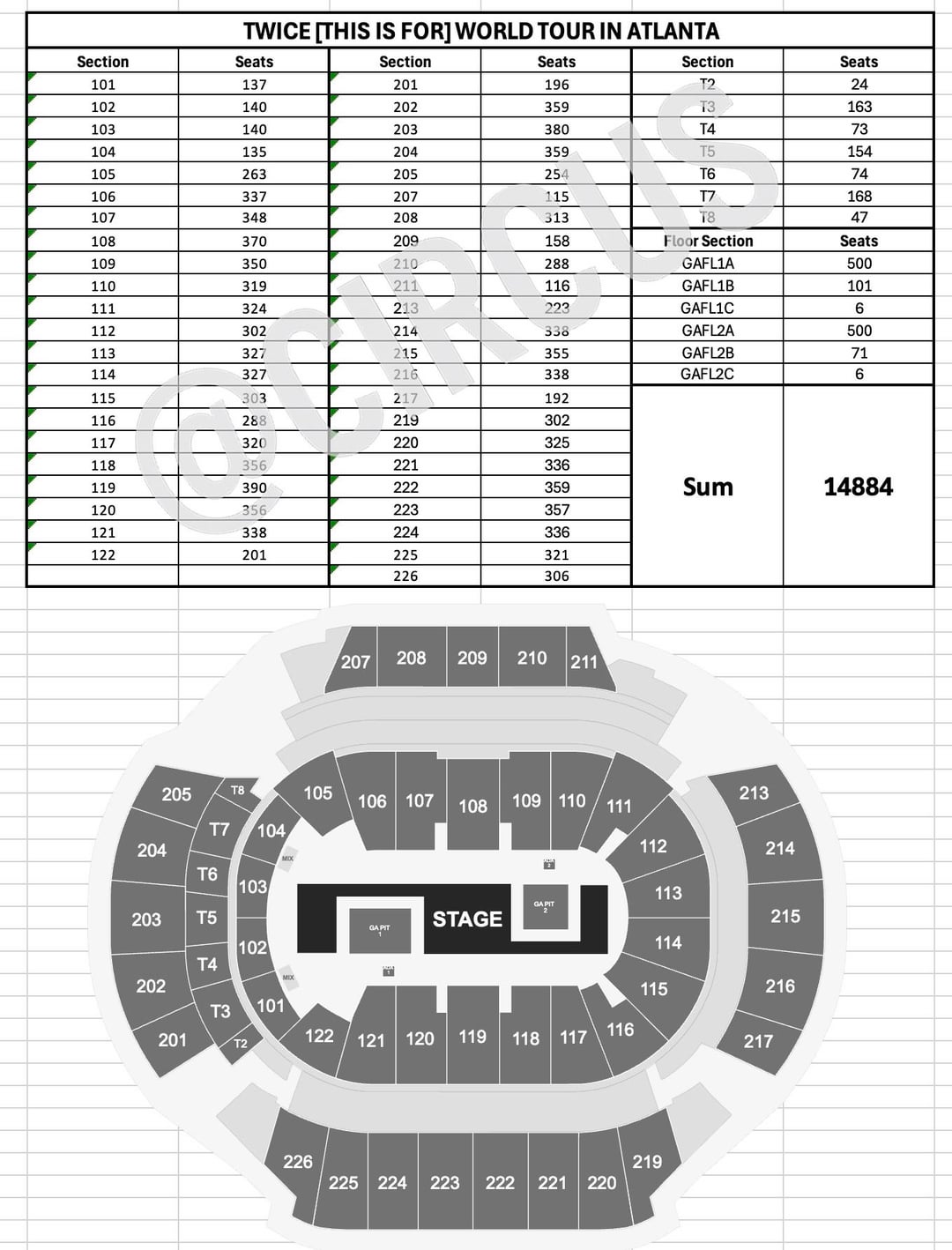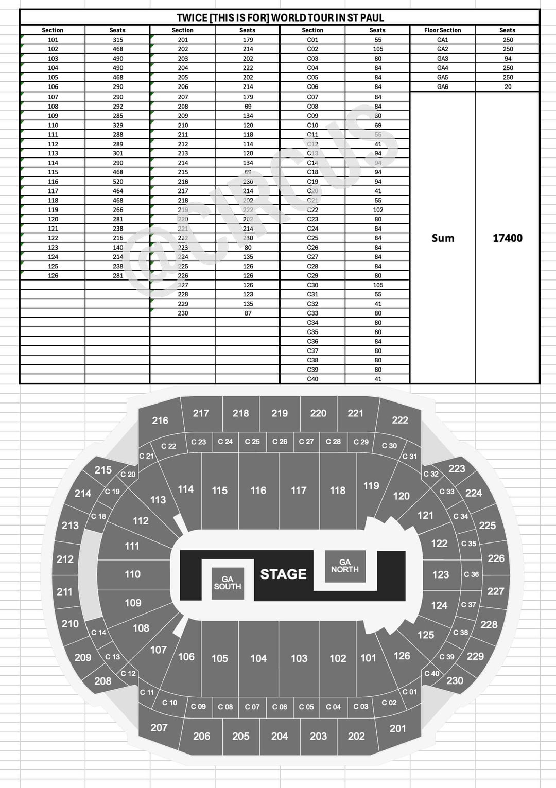 (يوضح ما ورد أعلاه تعدادات المقاعد التفصيلية لـ 20 موقعًا. قد تكون بعض مخططات المقاعد المقابلة غير دقيقة – يرجى الرجوع إلى Ticketmaster للحصول على التحديثات.)