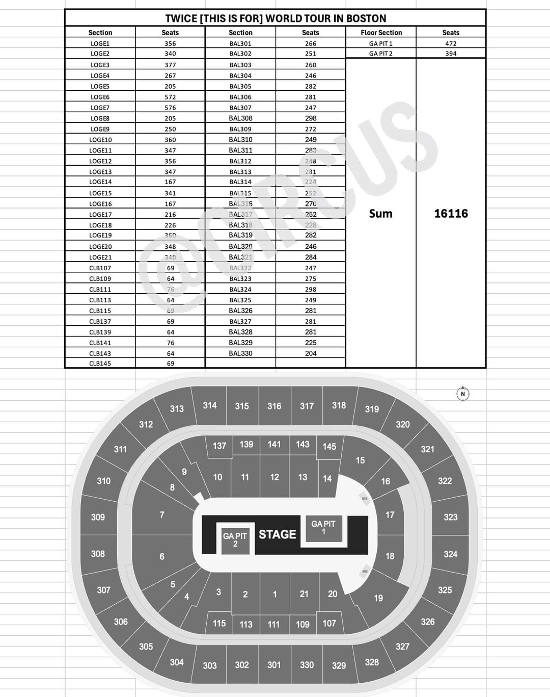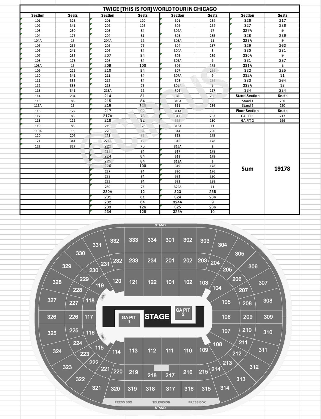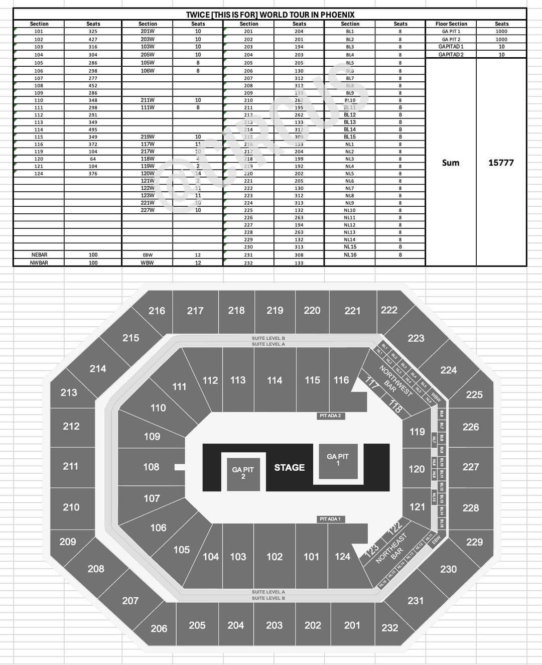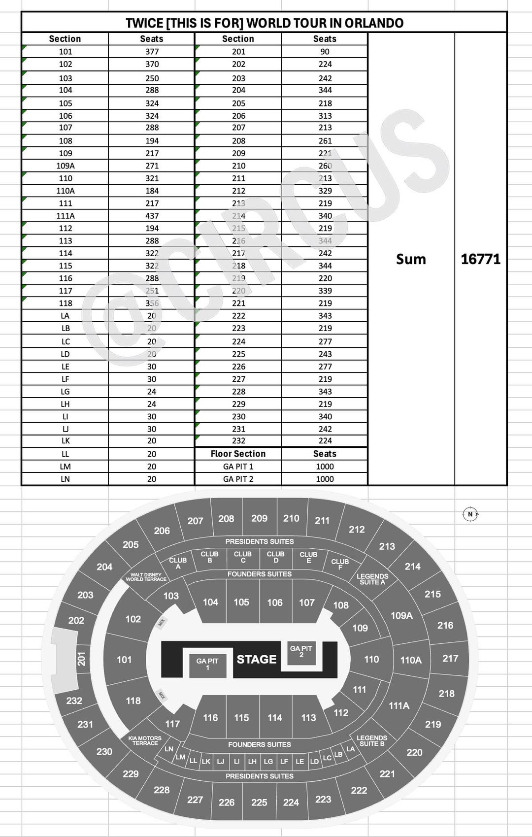 (يوضح ما ورد أعلاه تعدادات المقاعد التفصيلية لـ 20 موقعًا. قد تكون بعض مخططات المقاعد المقابلة غير دقيقة – يرجى الرجوع إلى Ticketmaster للحصول على التحديثات.)