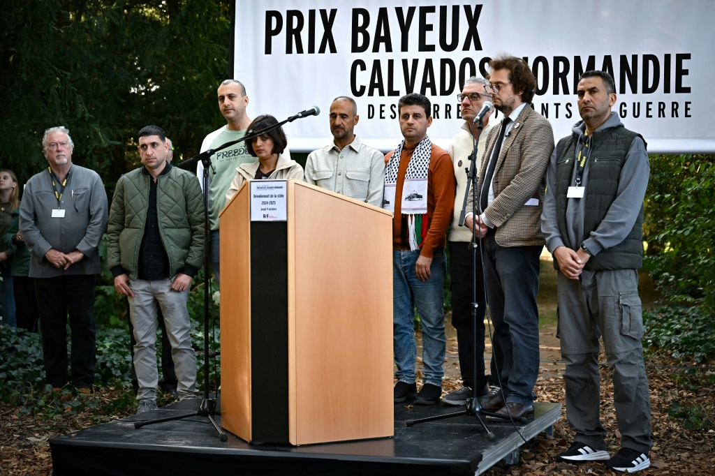 رُفع علم فلسطين على خشبة المسرح، فيما صفّق الحاضرون طويلا لأعضاء الفريق الغزّي، وعددهم 1100 شخص، تقديرا لشجاعتهم في مواصلة مهمتهم الإعلامية تحت القصف خلال الحرب التي شنّتها إسرائيل على غزة عقب الهجوم غير المسبوق الذي نفّذته حركة حماس في 7 تشرين الأول/أكتوبر 2023 على جنوب الدولة العبرية.