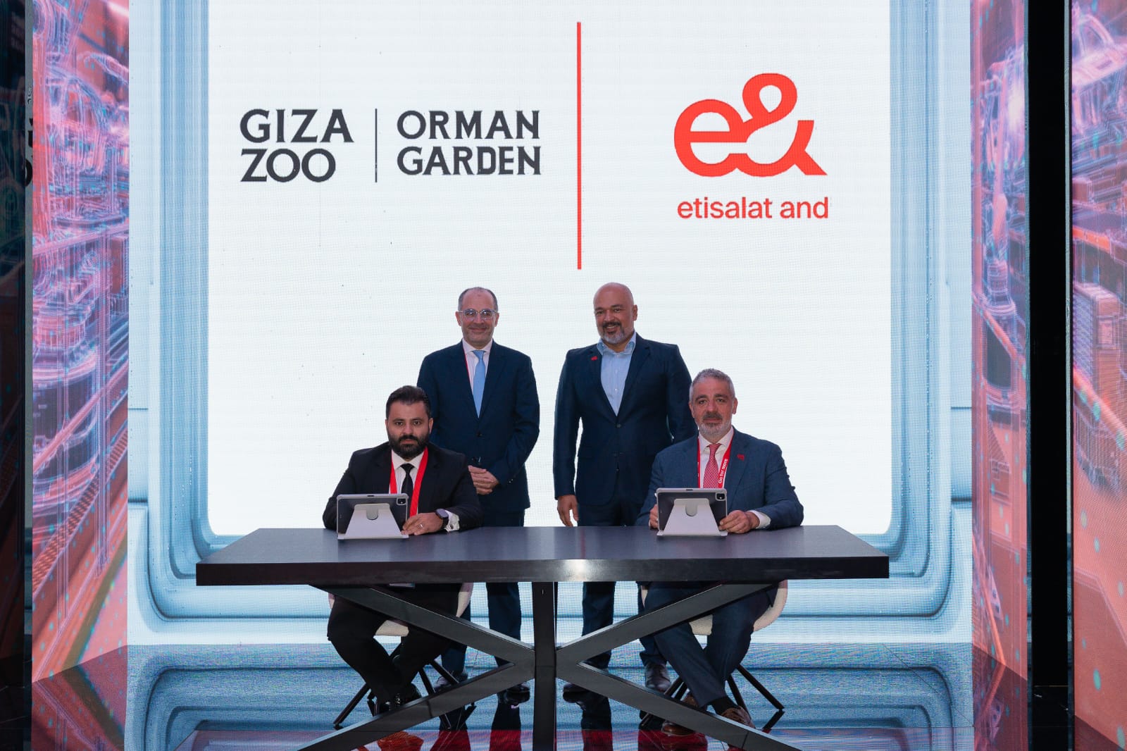 من ناحية أخرى وقعت شركة إي آند بيزنس – التابعة لشركة إي آند مصر، مذكرة تفاهم مع شركة “حدائق” لتطوير وإدارة حديقة الحيوان، بهدف تحويل حديقتي الحيوان والأورمان إلى نموذج عالمي للحدائق الذكية، على أن يتم ذلك من خلال تطوير شامل للبنية التحتية التكنولوجية وتطبيق أحدث حلول التحول الرقمي.