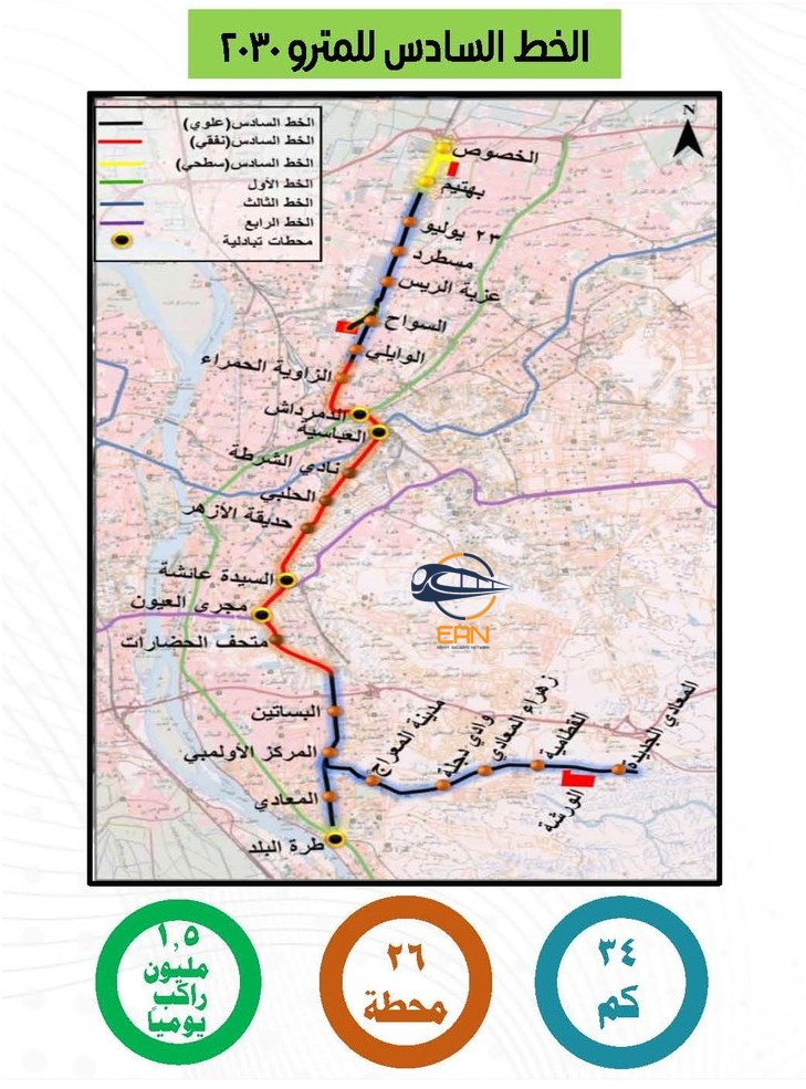 مسار الخط السادس لمترو القاهرةتعاون مصري – فرنسي لتنفيذ المشروع
