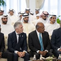 ورحب سموه بضيوف الدولة ـ خلال اللقاء الذي جرى في قصر البحر في أبوظبي – معرباً عن تمنياته لهم التوفيق في اجتماعاتهم للخروج بنتائج تسهم في تعزيز جهود المجتمع الدولي نحو مجتمعات أكثر أمناً واستقراراً وازدهاراً.