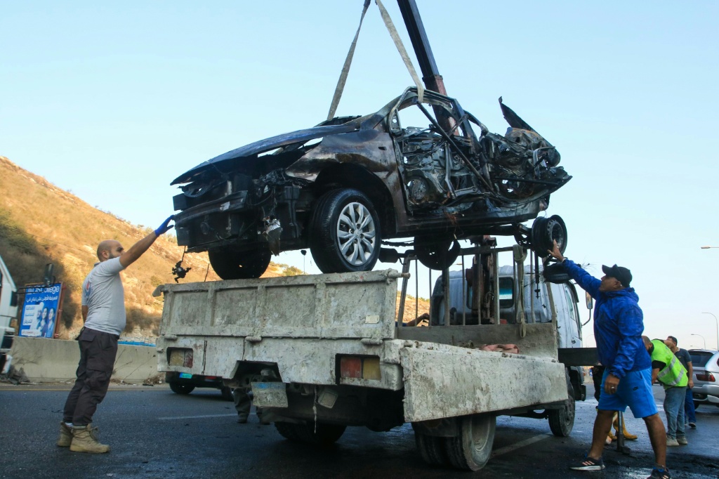 وشاهد مصوّر فرانس برس في موقع الغارة مسعفين يعملون على جمع أشلاء من السيارة المتفحمّة، بينما تناثرت قطع منها على الطريق العام وسط زحمة سير.