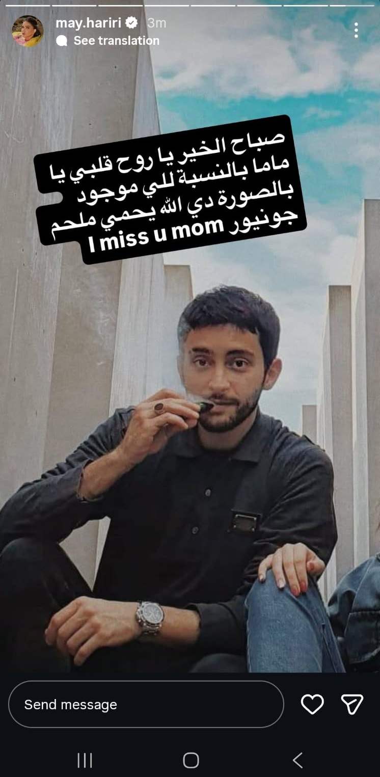 نشرت الفنانة ميّ حريري، صورة عبر خاصية “ستوري” عبر حسابها على “انستغرام”، لابنها ملحم جونيور، نجل الفنان الراحل ملحم بركات.