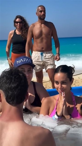 وظهرت بسنت برفقة صديقتها وعدد من المشاركين وهم يجلسون داخل حوض مليء بالماء والثلج، ملتزمين بتعليمات المدرب التي بدأت بالابتسام، ثم أخذ شهيق وزفير بعمق، تلتها مرحلة الاسترخاء، وصولًا إلى غمر الرأس في الماء.