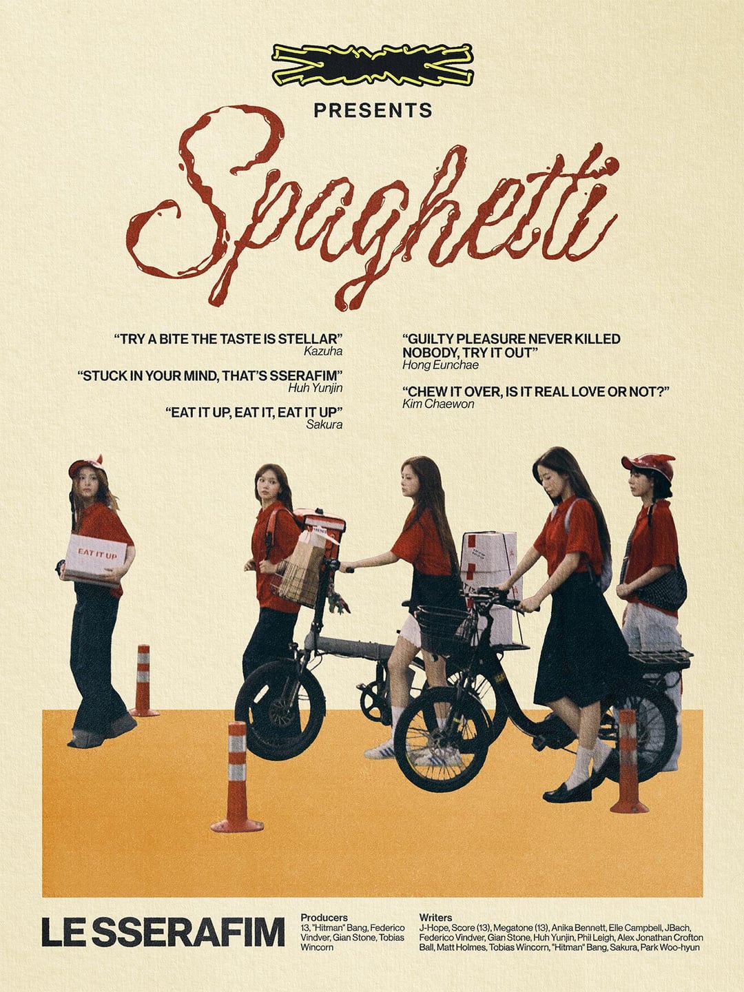 انتهى بي الأمر بتصميم نمط ملصق الفيلم مع هذا التصميم. لم أكن متأكدًا من السباغيتي في البداية، لكن الأغنية أثرت في نفسي كثيرًا. لقد كانت عالقة في رأسي لعدة أيام.