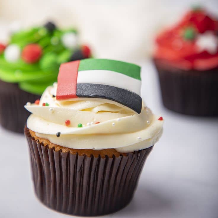 قطع كوكيز على شكل علم الإمارات أو على هيئة رقم العيد الوطني، مزينة باللون الأحمر والأخضر والأبيض والأسود، وتقدم في أكياس شفافة مع بطاقة تهنئة صغيرة.