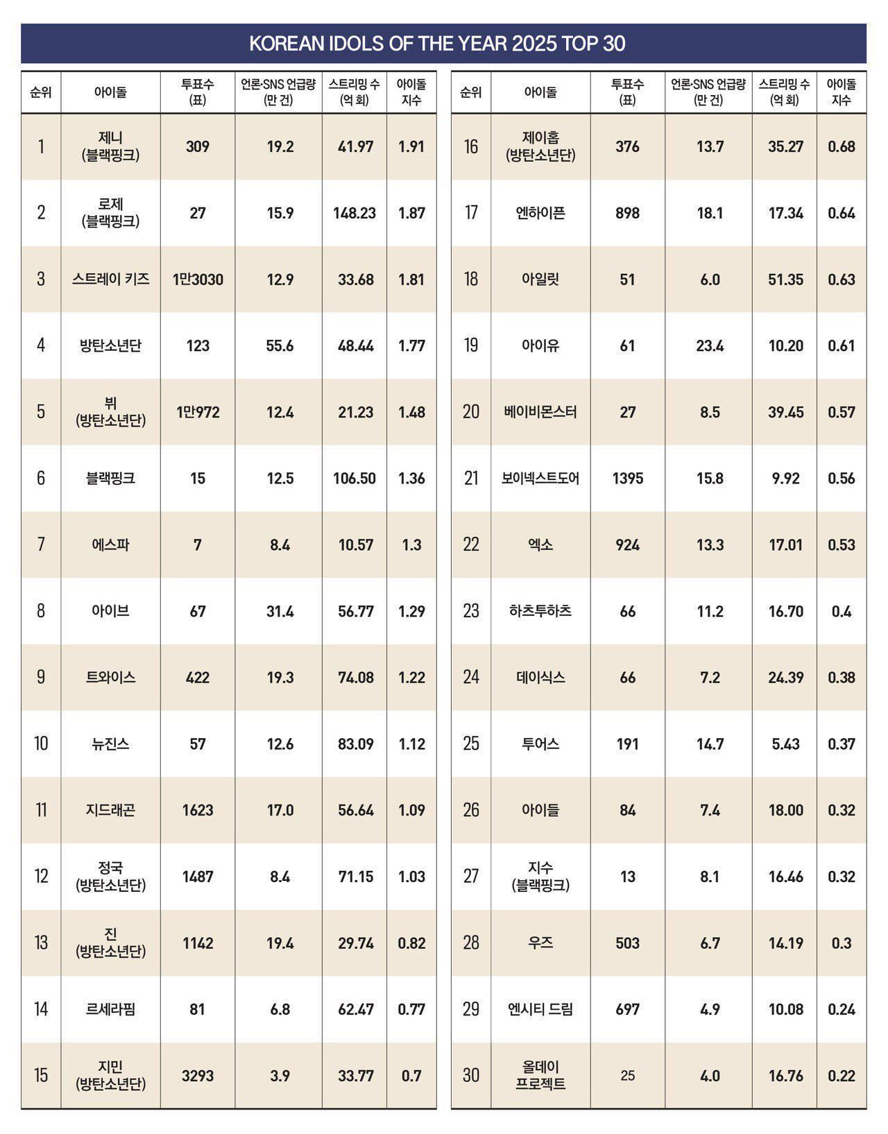 251201 BLACKPINK وJISOO وJENNIE وROSÉ مدرجون في قائمة أفضل 30 آيدول كوري في مجلة Forbes Korea لعام 2025