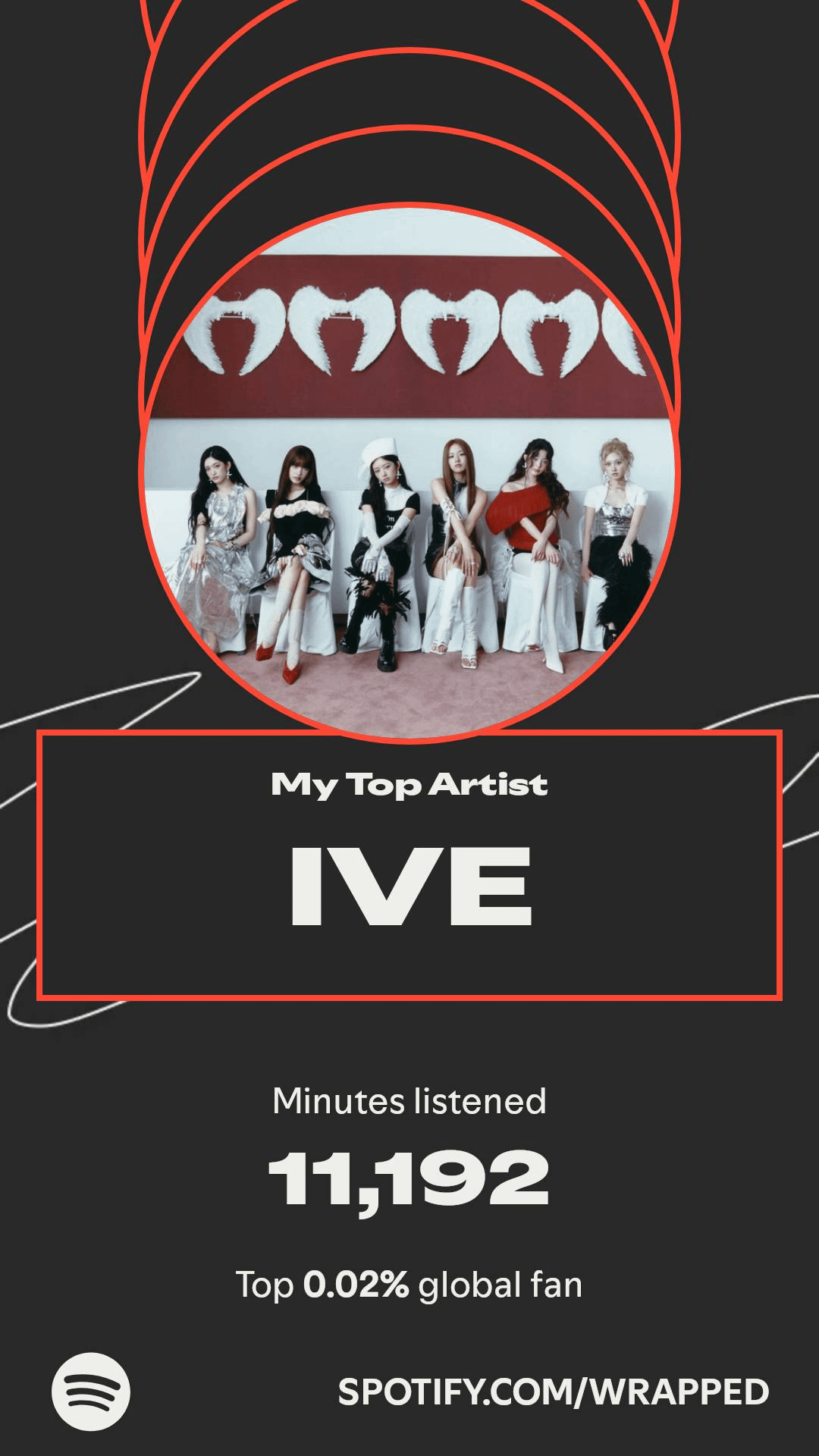 لقد استمعت إلى IVE لمدة تزيد قليلاً عن أسبوع كامل في المتوسط. من الواضح أنها منتشرة على مدار العام لذا فهي أكثر صحة. لقد احتلوا أفضل 5 أغاني لهذا العام. ماذا عنكم جميعاً؟ IVE IVE