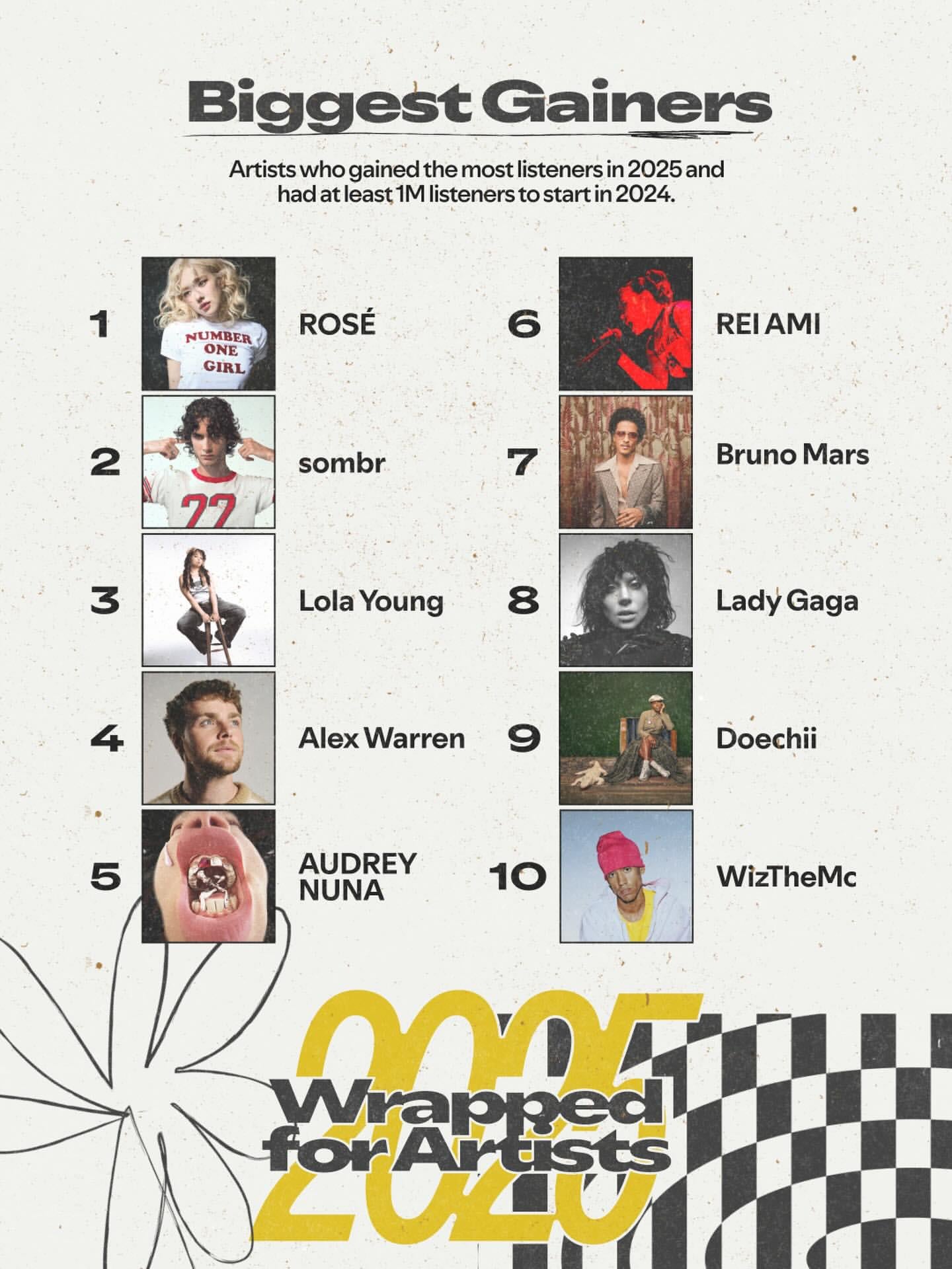 تم تصنيف ROSÉ على أنها الفنانة رقم 1 التي حصلت على أكبر عدد من المستمعين على Spotify في عام 2025! BLΛƆKPIИK Rosé BLACKPINK Rosé blackpink BlackPink Rosé BLΛƆKPIИK rosé 블랙핑크