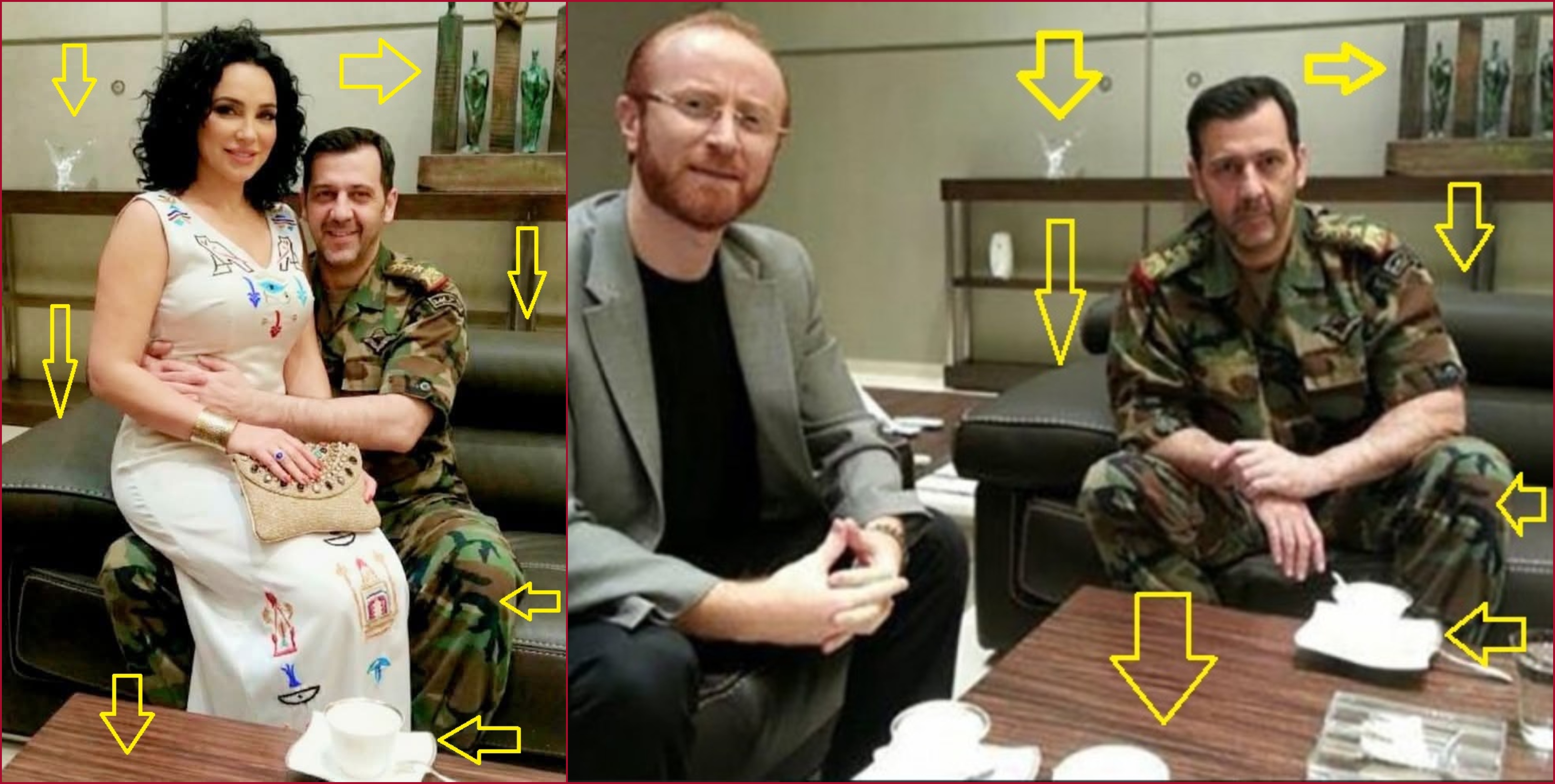 تظهر الصورة الفنانة سلاف فواخرجي جالسة في حضن ماهر الاسد في غرفة. وقد انتشرت أخيراً في حسابات كتبت معها (من دون تدخل): “صورة مسربة من بيت ماهر الأسد لسلاف فواخرجي تجلس بحضنه”، اضافة الى تعليقات مختلفة.