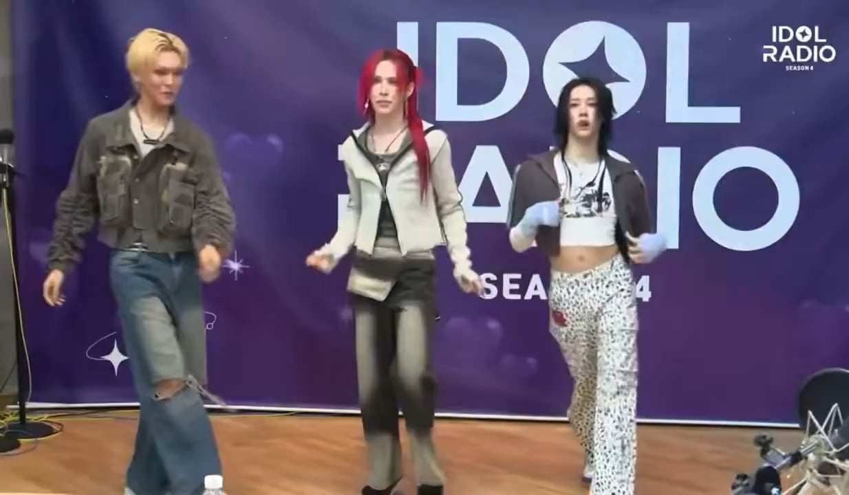 251217 إكسلوف ووموتي وروي وهيون يرقصون على السباغيتي من لو سيرافيم على راديو إم بي سي آيدول LE SSERAFIM LE SSERAFIM