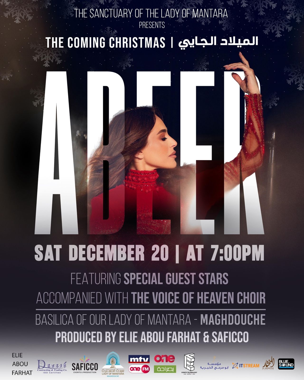 في أجواء ميلادية مميزة، تحيي الفنانة عبير نعمة حفلاً استثنائياً في بازيليك سيدة المنطرة – مغدوشة تحت عنوان “الميلاد الجايي”، وذلك مساء يوم 20 كانون الأول، بمشاركة جوقة Voice of Heaven التي ترافقها في أمسية موسيقية تُعيد إحياء روح الميلاد بنفَس جديد.