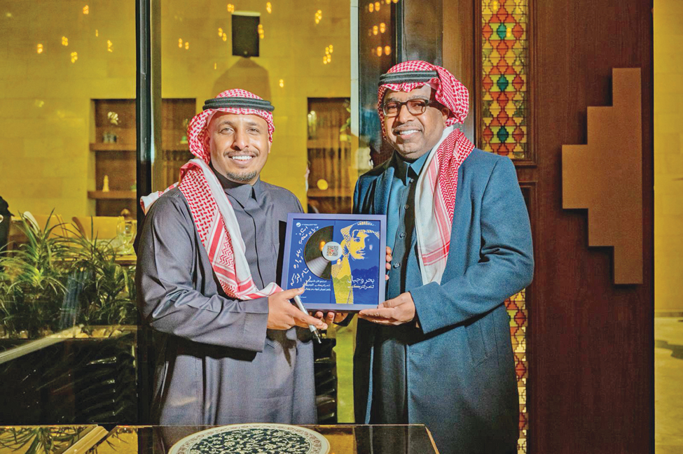 ثامر التركي مدشناً ألبوم «بحر وجبال» مع مدير الإدارة الفنية في روتانا ذياب متعب