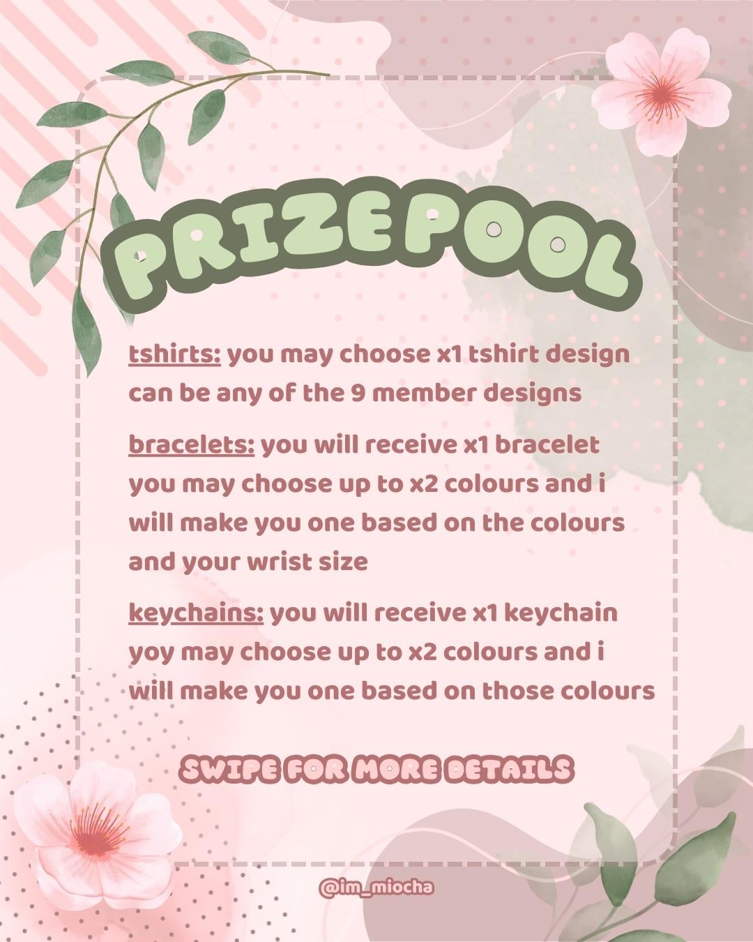 الجوائز: • المركز الأول: ×1 قميص من صنع المعجبين، وسوار ×1، وسلسلة مفاتيح ×1 • المركز الثاني: سوار ×1، وسلسلة مفاتيح ×1 • المركز الثالث: سلسلة مفاتيح ×1